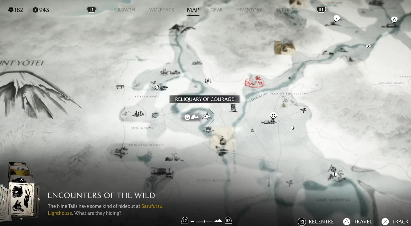В качестве награды за первое решенное Святилище вы получите амулет горы Ётэй, который немного снижает получаемый урон и восстанавливает здоровье после выполнения идеального парирования. Улучшение амулета происходит путем решения головоломок в других Святынях (+1 уровень за каждую новую Святыню, порядок при этом не важен).
