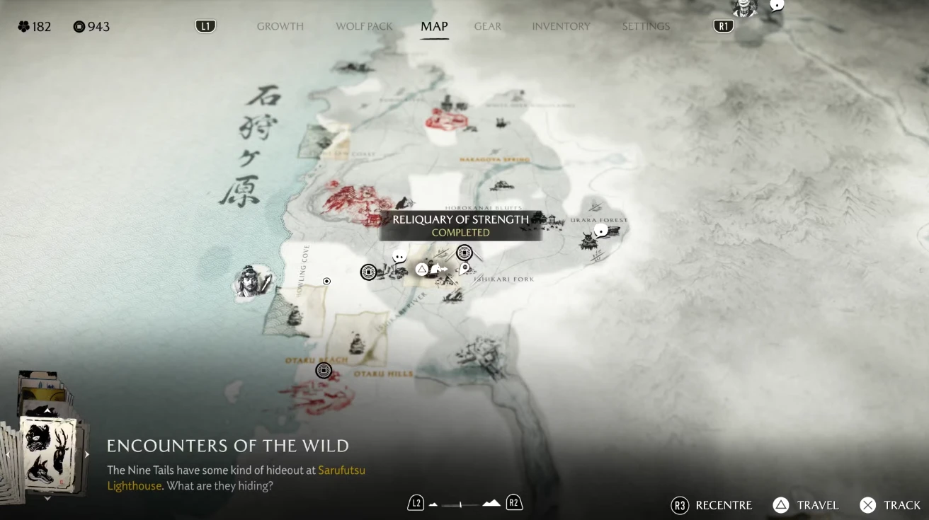 Для активации статуй используйте лук Ханкю и огненные стрелы. Выстрелите в связки веток под каждой статуей, чтобы поджечь их. Если стрелы закончатся, их можно пополнить у входа на территорию Святыни. После того, как все четыре статуи будут зажжены вращайте их, чтобы лисы смотрели на алтарь.