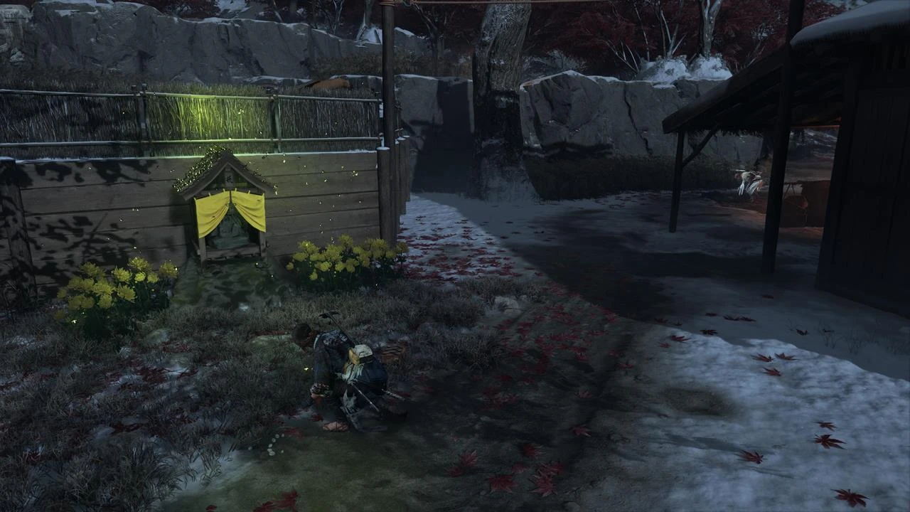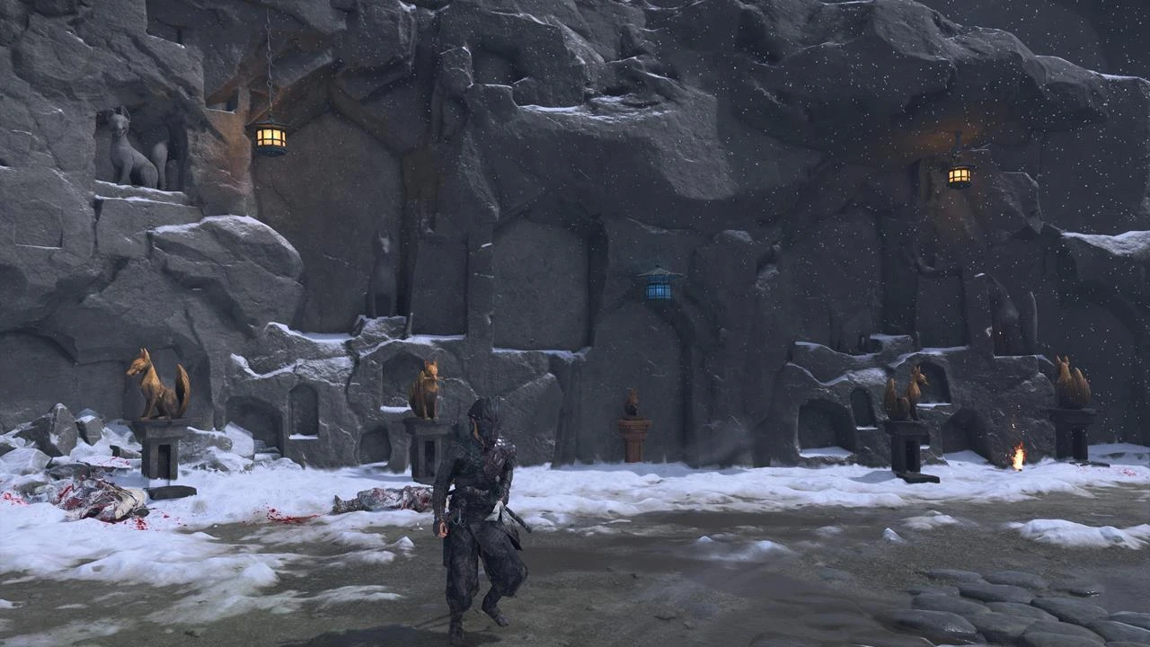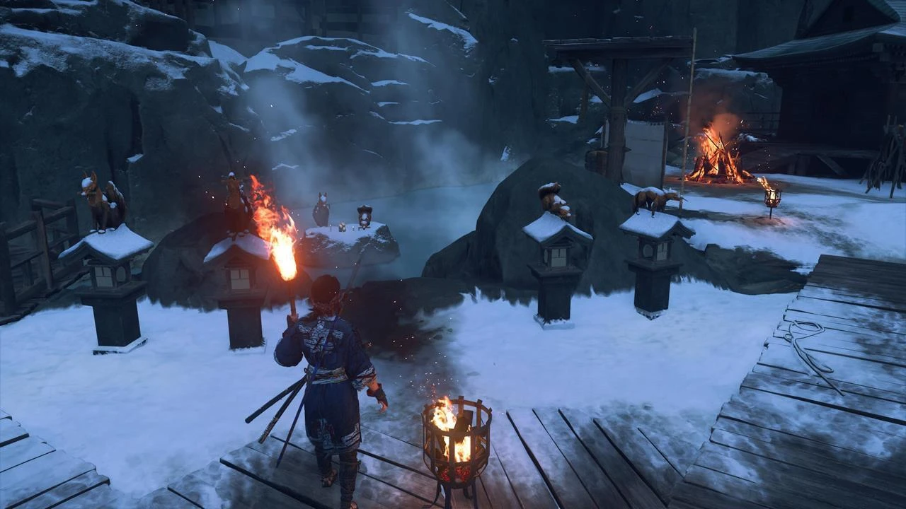 - Местоположение: Секретный тренировочный лагерь возле горячего источника в юго-западном углу хребта Тешио. Зажгите правильный фонарь, ориентируясь на статую лисы у входа. В убежище Сноу Дрифт Спрингс зажгите фонарь в центре, где лежит статуя лисы.