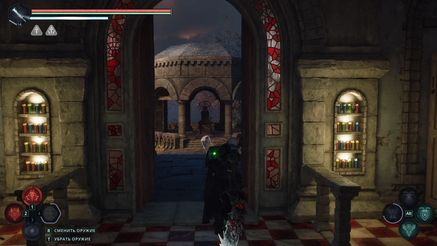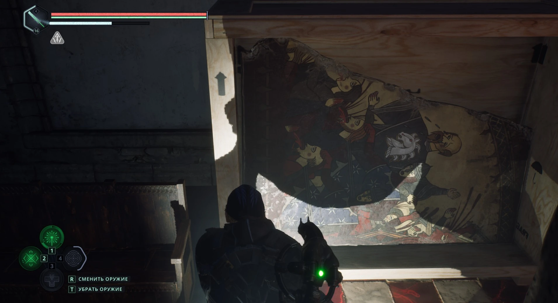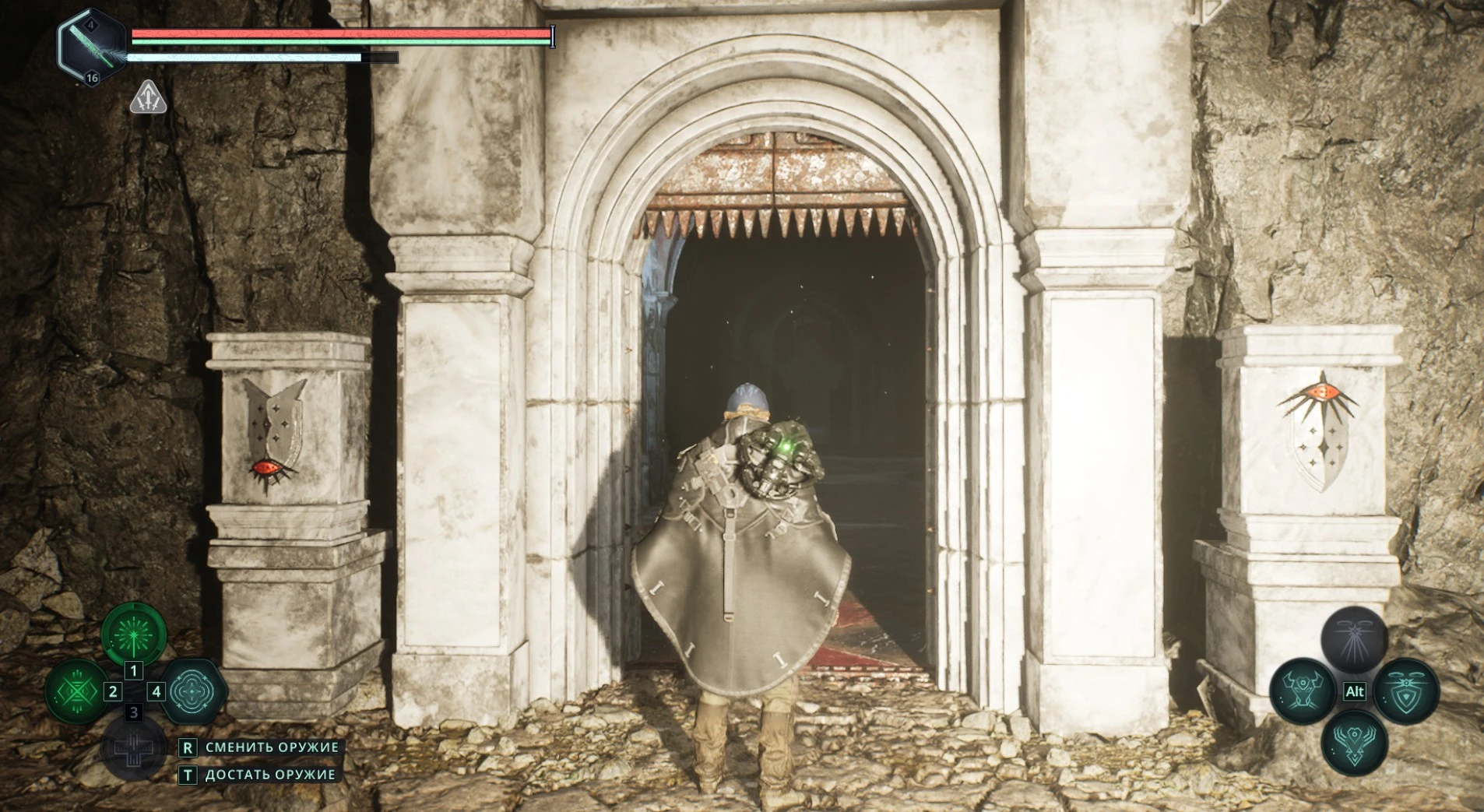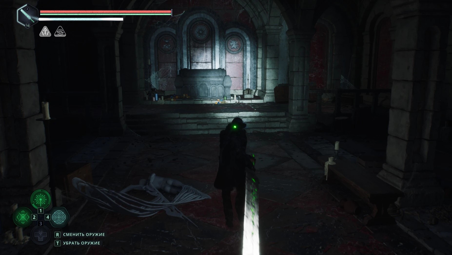 Расправившись с врагами, подойдите к саркофагу в конце комнаты и активируйте рычаг рядом с ним.