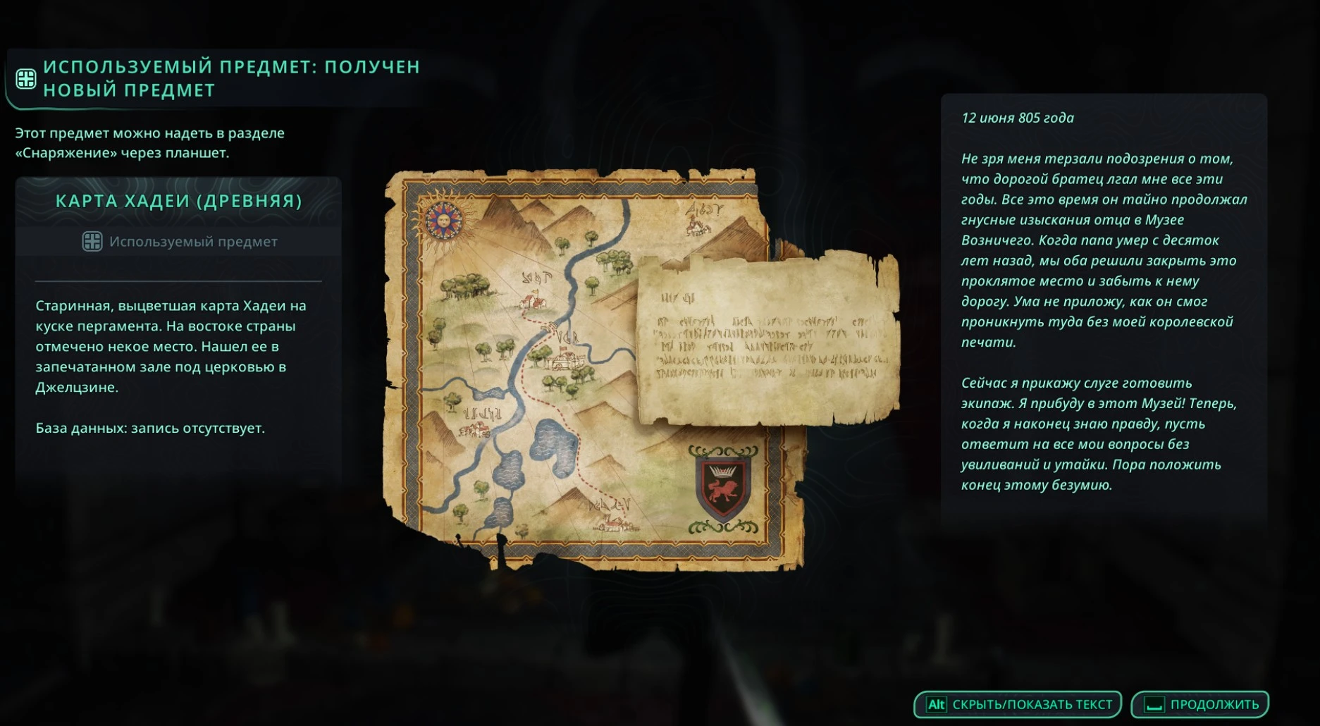 В итоге вы получите Железную печать (Падение) и старинную карту Хадеи.