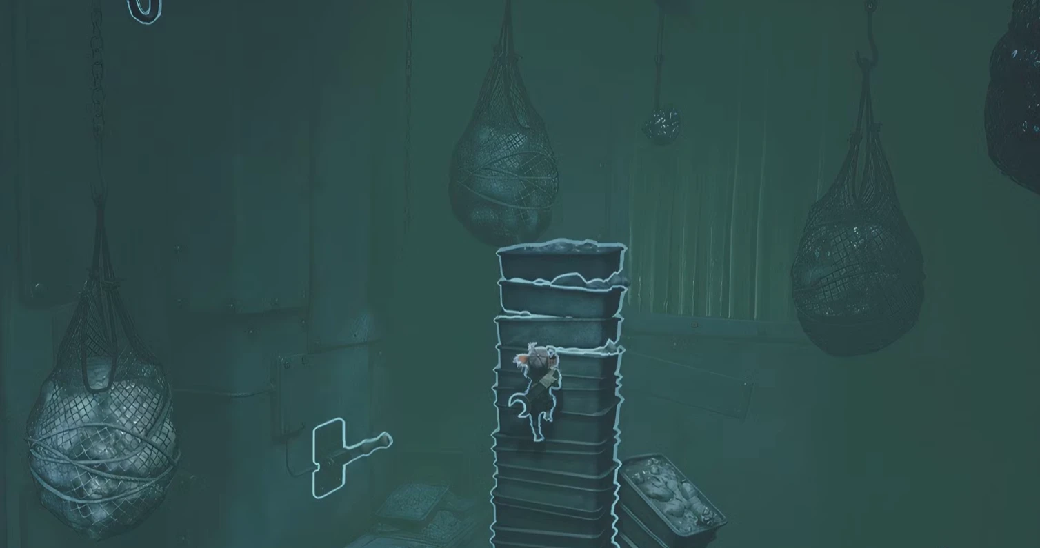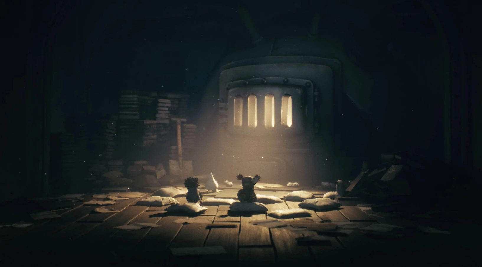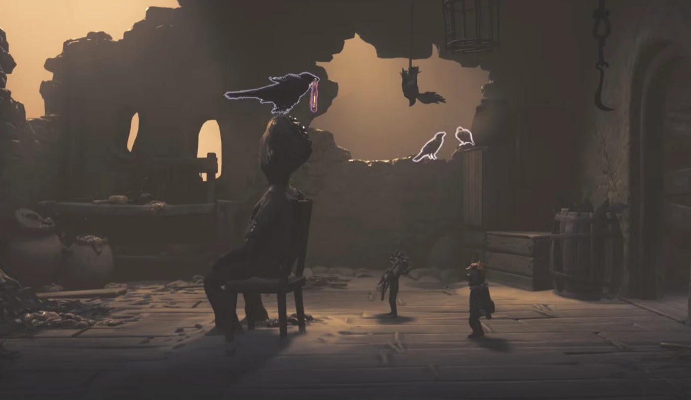 Самым первым серьёзным препятствием в Little Nightmares 3 станет закрытая дверь в локации «Некрополь». Чтобы найти ключ, двигайтесь влево и перейдите по нескольким деревянным мосткам, пока не дойдёте до рычага с рукояткой. Один игрок должен вращать рукоятку, а второй – стоять на опускающемся ящике. Когда второй игрок окажется на ящике, первый должен снова повернуть рукоятку, чтобы поднять платформу. Поднявшись наверх, второй игрок должен потянуть за рычаг справа – это опустит лестницу для первого игрока. Когда оба окажутся на верхней площадке, пройдите к дверному проёму слева и уберите доску, преграждающую путь.