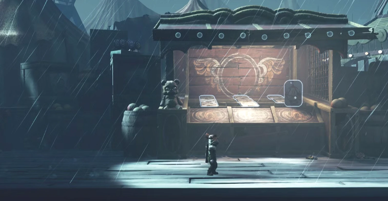 Миновав персонажа с завязанными глазами, вы увидите палатку с тиром. Эта мини-игра не обязательна, однако её завершение принесёт вам достижение «Прямо в цель». Мишени тира изображают детей и номов. При использовании лука Малого необходимо целиться исключительно в номов. Задача станет элементарной, если вы играете за Одну. Просто позовите Малого к тиру, и он поразит нужные мишени, а вы получите заслуженную награду.