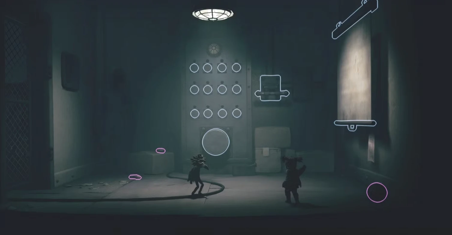 В процессе исследования Кондитерской фабрики во второй главе довольно скоро вы попадете в коридор, находящийся под наблюдением камеры безопасности. Если камера замечает движение, она немедленно блокирует ближайший проход, препятствуя вашему продвижению. Необходимо отыскать способ деактивировать камеру, чтобы получить доступ к следующей области. Здесь потребуется командная работа. Однако, при одиночном прохождении сложностей станет меньше: ИИ предоставит автоматическую помощь, независимо от того, играете ли вы за Одну или Малого.