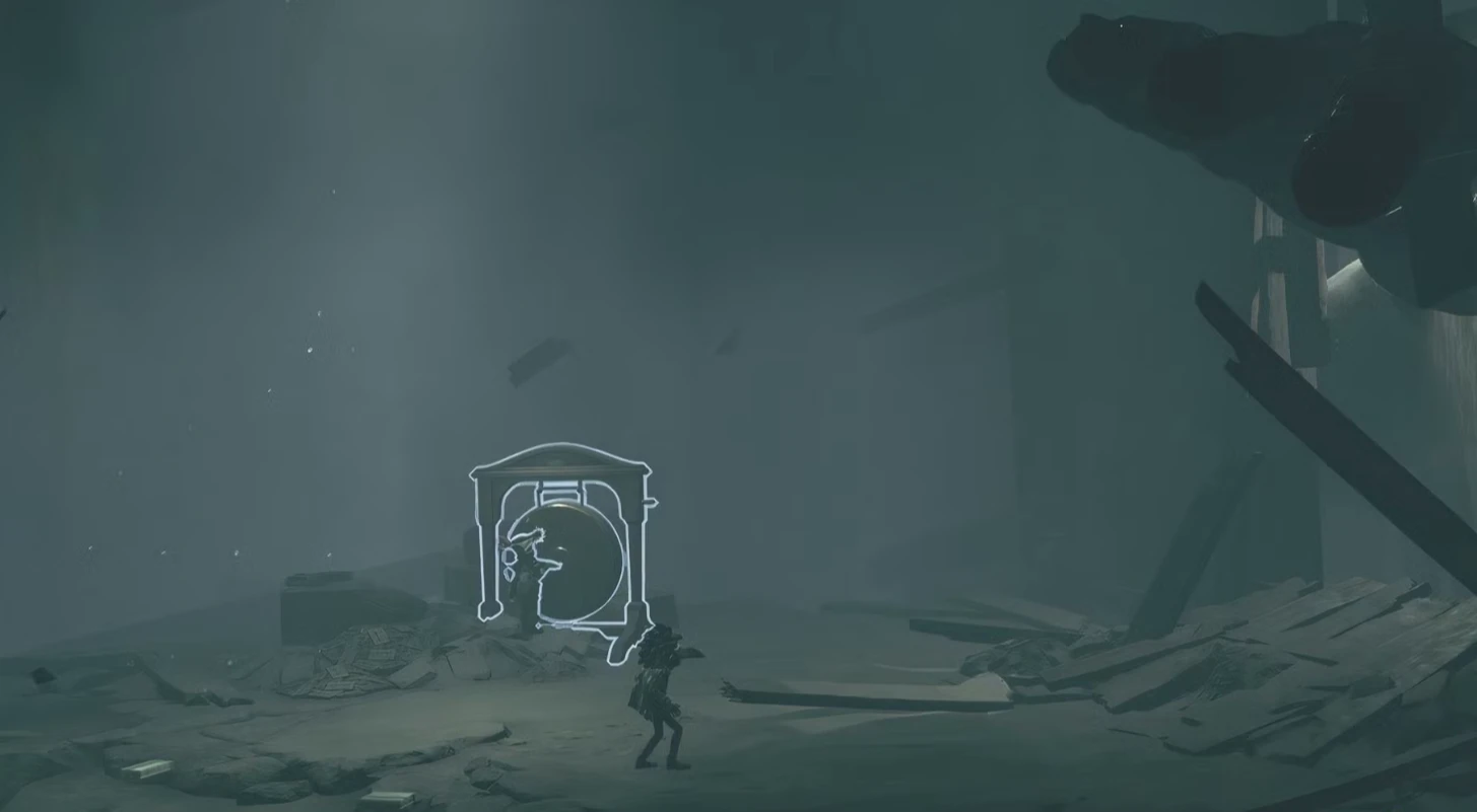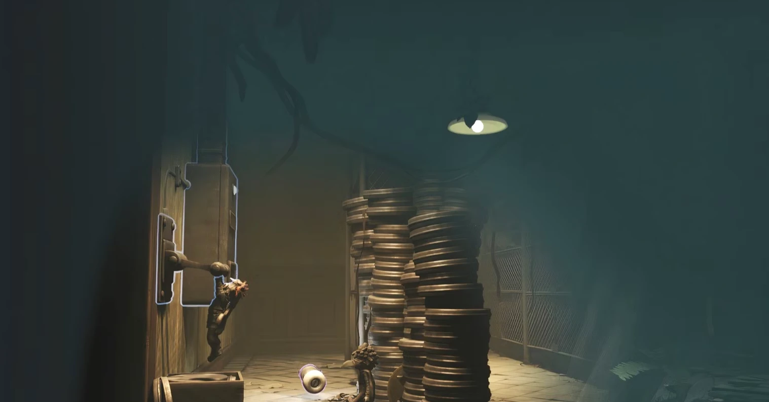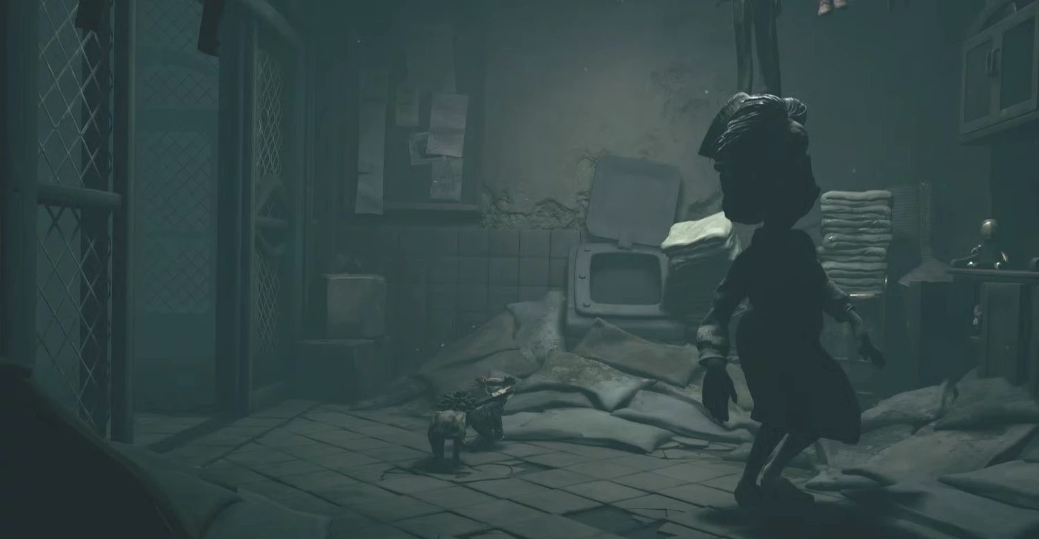 В конце следующего коридора расположены лифт и рычаг. Потяните рычаг, чтобы вызвать лифт, и поднимитесь на следующий этаж. Подойдите к краю коридора, где вы увидите разряженную батарею, пустую розетку и подвижную тележку. Переместите тележку к левой стене, чтобы получить доступ к открытому окну, затем продолжайте движение влево, пока не окажетесь в комнате с запертой клеткой. Заберитесь на коробки у задней стены, чтобы добраться до небольшого вентиляционного отверстия, ведущего внутрь клетки. Вы быстро поймете, что это клетка, в которой Малой находился в своих видениях.