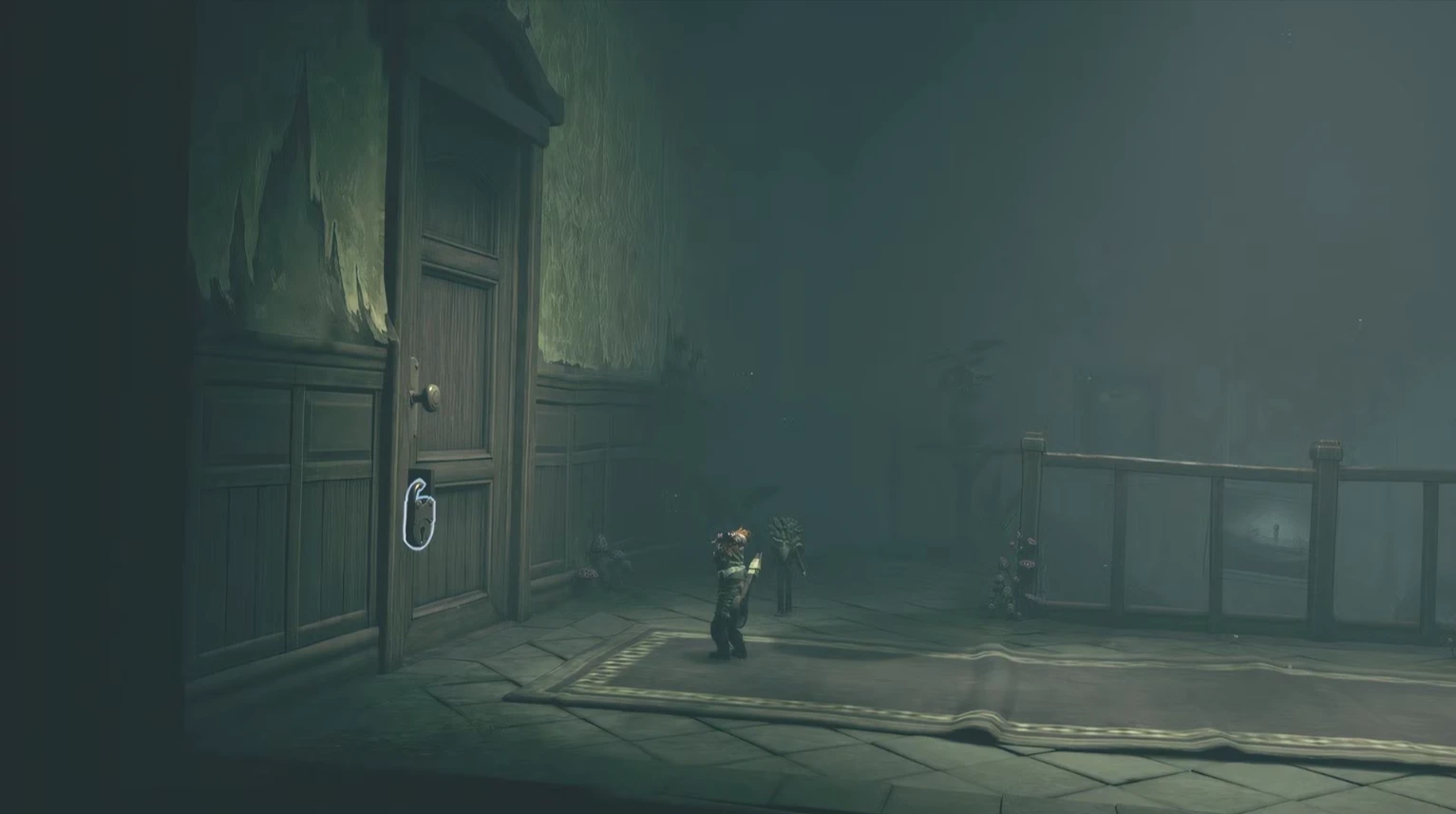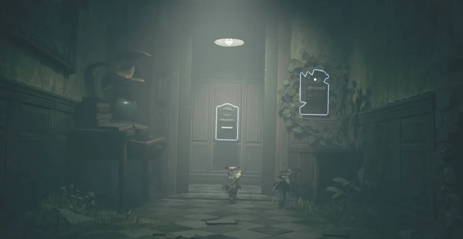 За открытой дверью поднимитесь по шкафу, чтобы дотянуться до рычага, расположенного в коридоре. Это активирует открытие дверей и позволит продвинуться дальше. Из-за провала в полу, вам снова потребуется кукла. Вернитесь в коридор, дверь в который вы только что открыли (двигайтесь "на себя"), там вы должны найти оставленную ранее куклу.