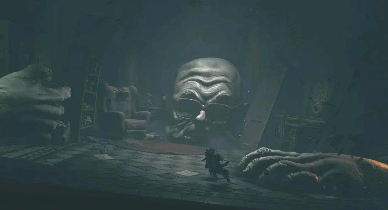Продолжайте путь, и вы попадете в коридор, где снова появится рука. Бегите без оглядки, рука будет преследовать вас. Появится также гигантское лицо и еще одна рука. Правая рука попытается схватить вас, но Малой должен будет попасть стрелой в открывшийся глаз. Для этого потребуется успешно пройти QTE-последовательность. После этого Психиатр отступит.