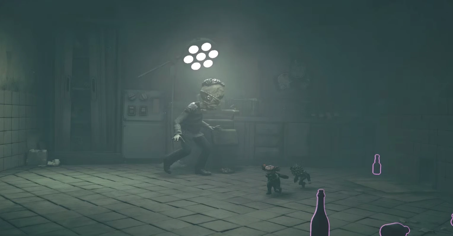 Пригнувшись, двигайтесь медленно в левый угол комнаты, стараясь держаться как можно дальше от доктора. Избегайте столкновения с пустыми стеклянными бутылками, разбросанными по полу, так как разбитое стекло привлечет его внимание. Добравшись до левой стороны, используйте лук Малого, чтобы выстрелить в одну из самых дальних бутылок. Звук разбившегося стекла заставит доктора отойти от двери. Воспользовавшись моментом, быстро взаимодействуйте с дверцей, откройте ее и покиньте комнату до того, как дантист успеет вас перехватить.