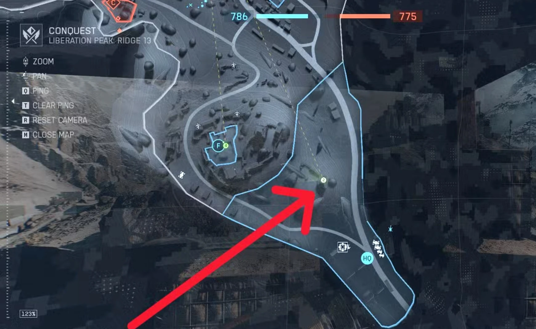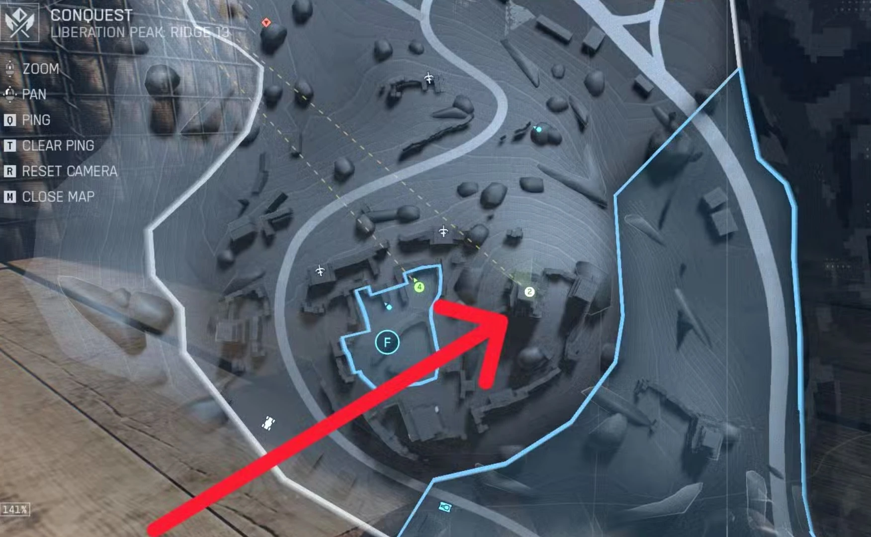 По праву считается одной из лучших не только на Liberation Peak, но и во всей игре. Расположенная к югу от Objective F, она обеспечивает широкий обзор на ключевые направления: часть точки F, всю точку E, фланги D, центральную скалу и часть ущелья у точки C.