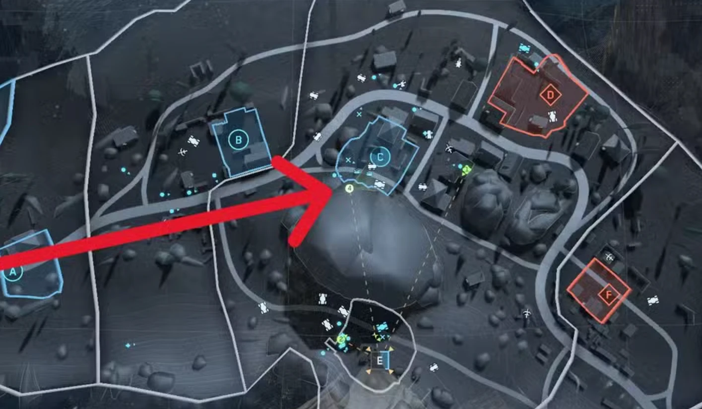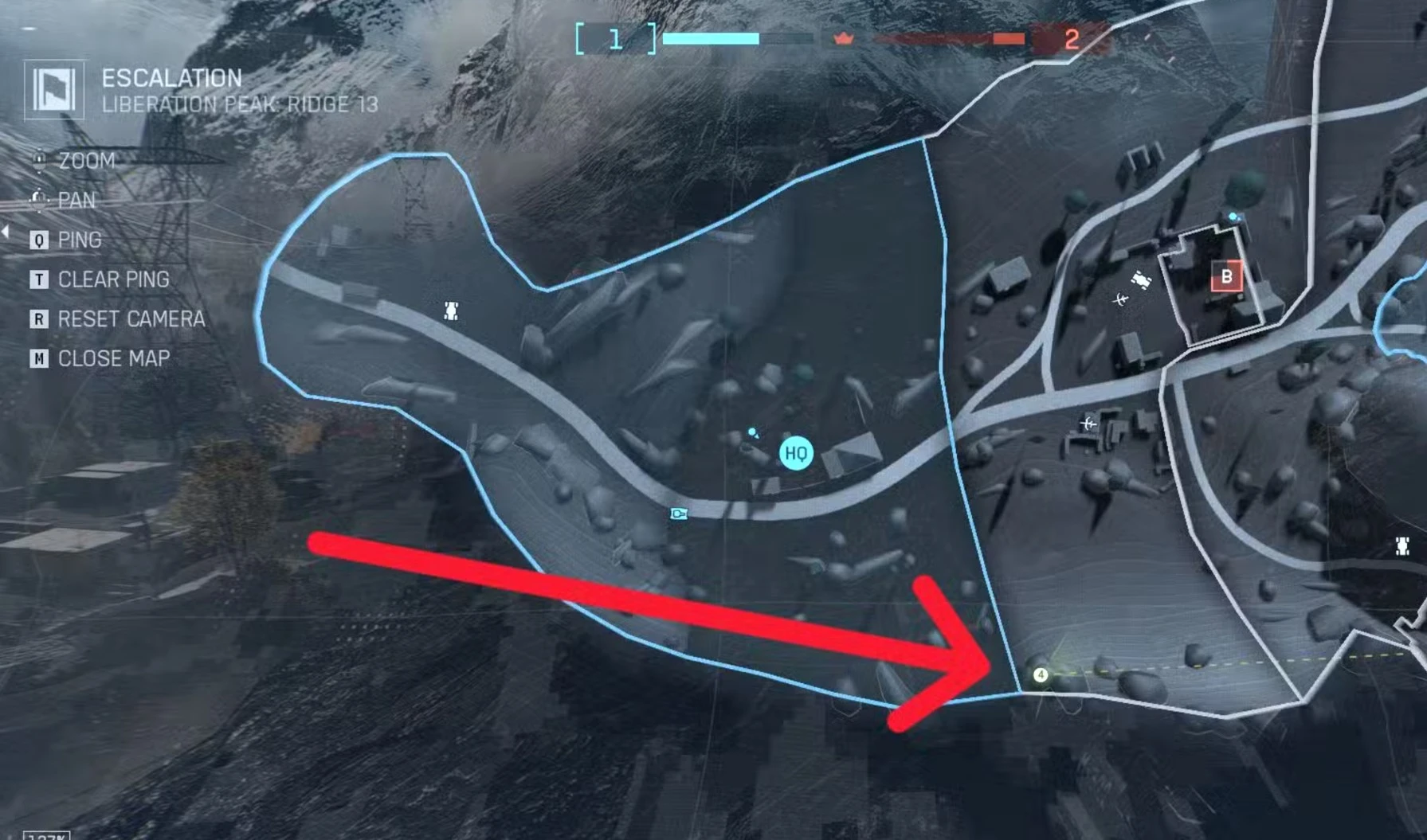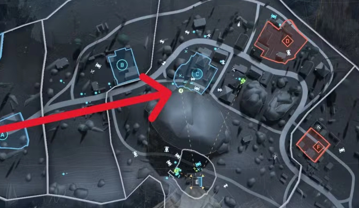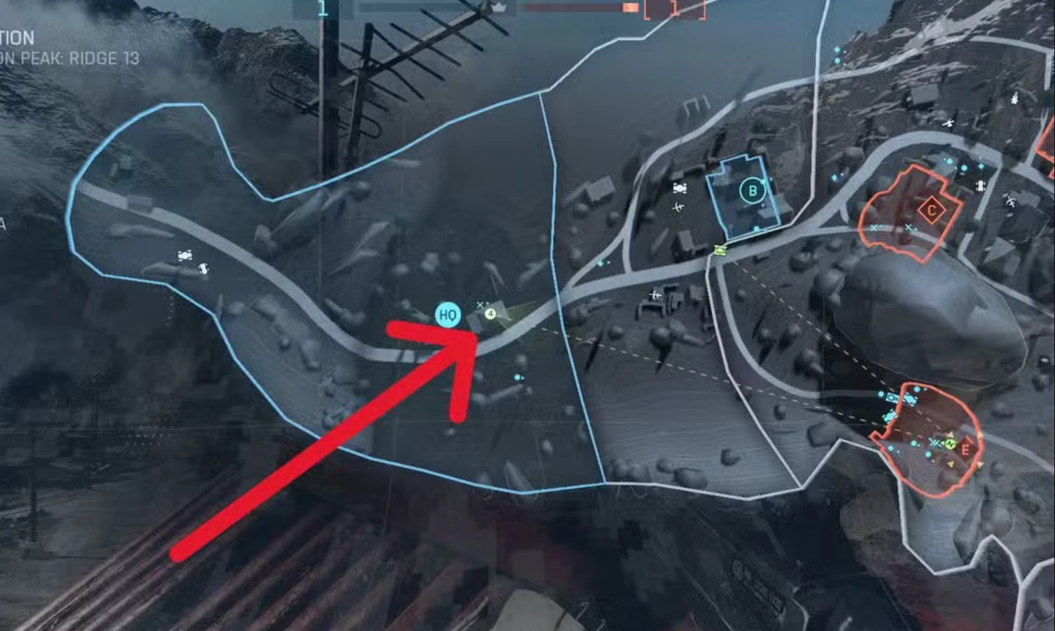 В случае отступления NATO, у подножия горы за пределами зоны штаб-квартиры расположена небольшая гряда, доступная через перепрыгивание скал. Отсюда открывается панорамный вид на цели B и C, центральную скалу и узкий коридор справа, ведущий к Objective E.