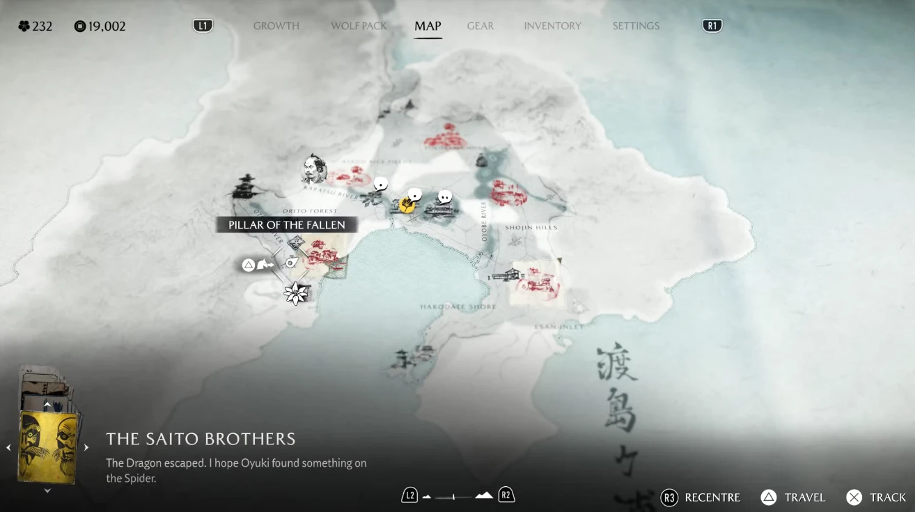 Столп расположен к востоку от озера Сикоцу. Чтобы быстро туда добраться, телепортируйтесь к родному дому Ацу и вернитесь к месту начала игры в Ghost of Yotei. Путь вперед будет прегражден оползнем, но его можно обойти слева, где вы найдете узкую тропинку, ведущую к нужной цели.