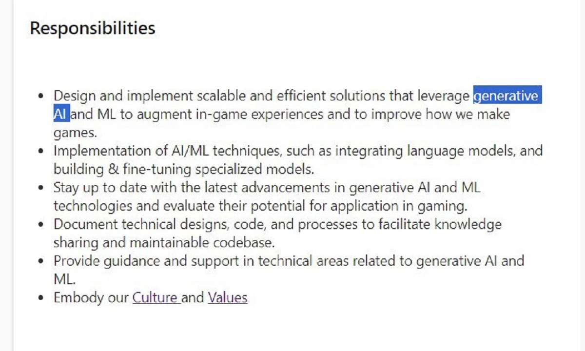 Microsoft не обязывает свои студии использовать генеративный ИИ в играх. Хотя технология может помогать в других задачах, например, в написании писем, для создания игр она не используется.