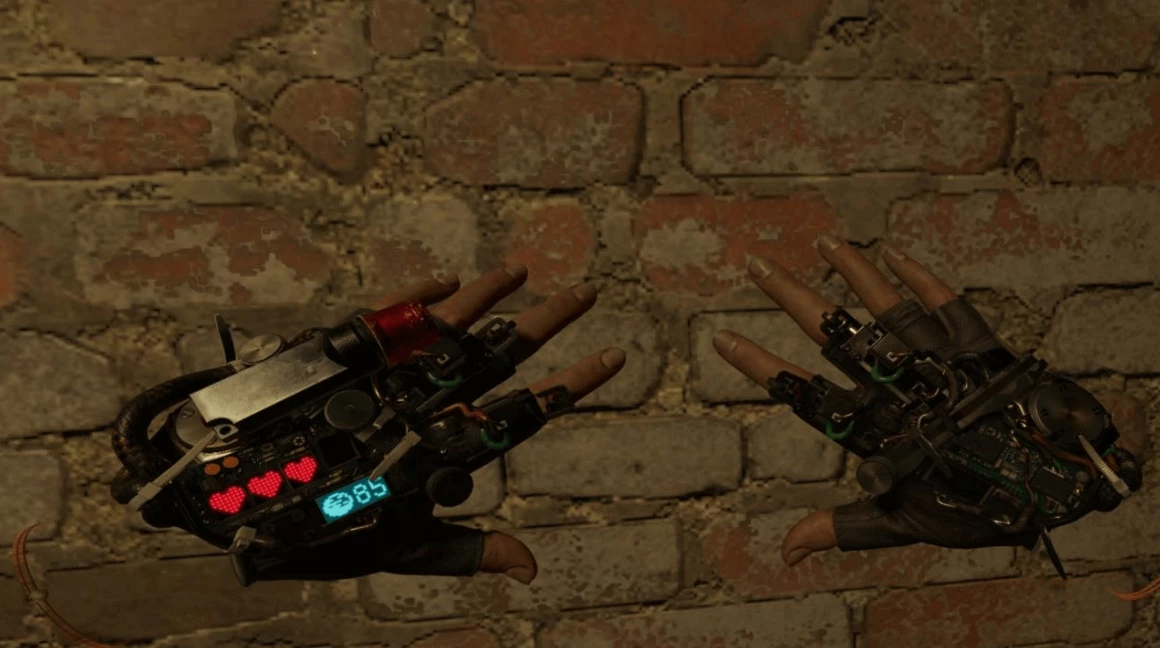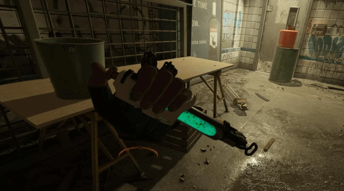 На перчатках, кстати, есть индикаторы здоровья и запаса ризина — очень удобно и интересно, ведь разработчики отказались от классического HUD в пользу большей VR-реалистичности.