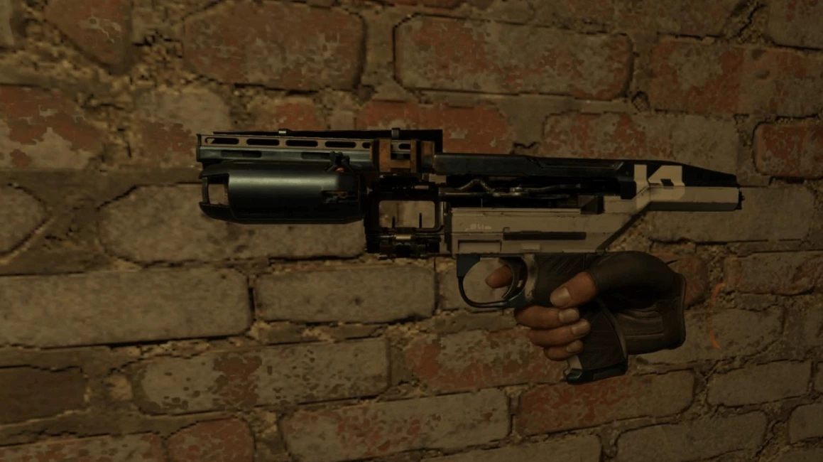 Обзор оружия начнем именно с пистолета. Впервые Аликс получит его от Рассела, благосклонно настроенного члена сопротивления. Это будет модифицированный M1911 с HUD-элементами, позволяющими видеть, сколько патронов осталось в магазине.