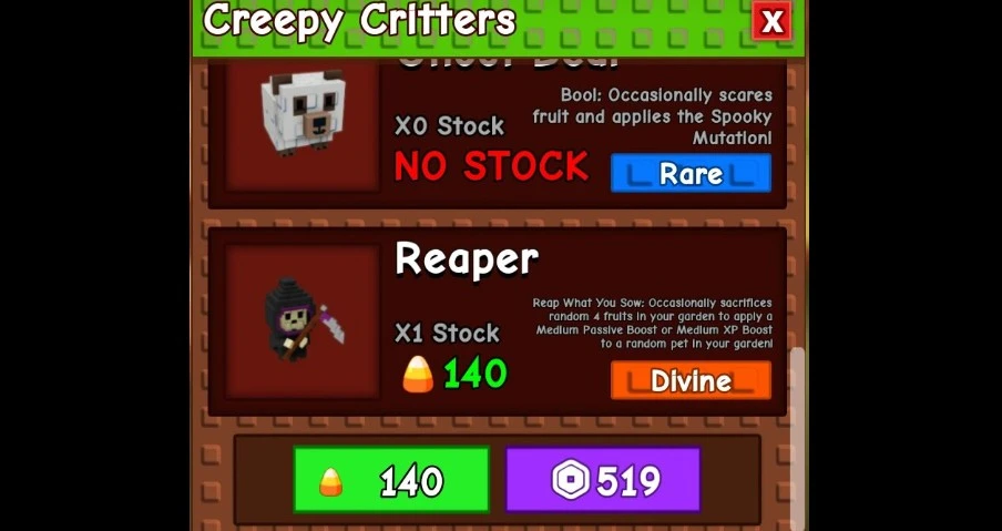 Чем кормить Жнеца (Рипер) в Роблокс Вырасти Сад