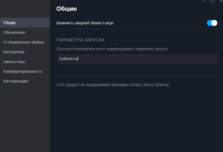 Возникшая сложность объясняется непреднамеренной блокировкой опции выбора языка в Steam-варианте игры. Это можно исправить, внеся изменения в параметры запуска.
