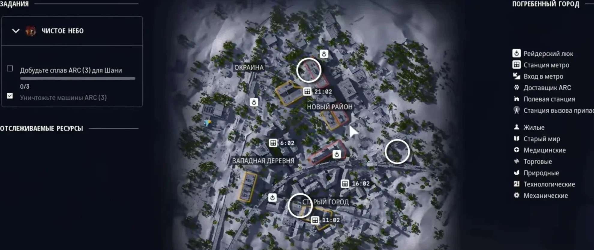 - Локация «Погребенный город»: В этой зоне можно найти три полевые станции.