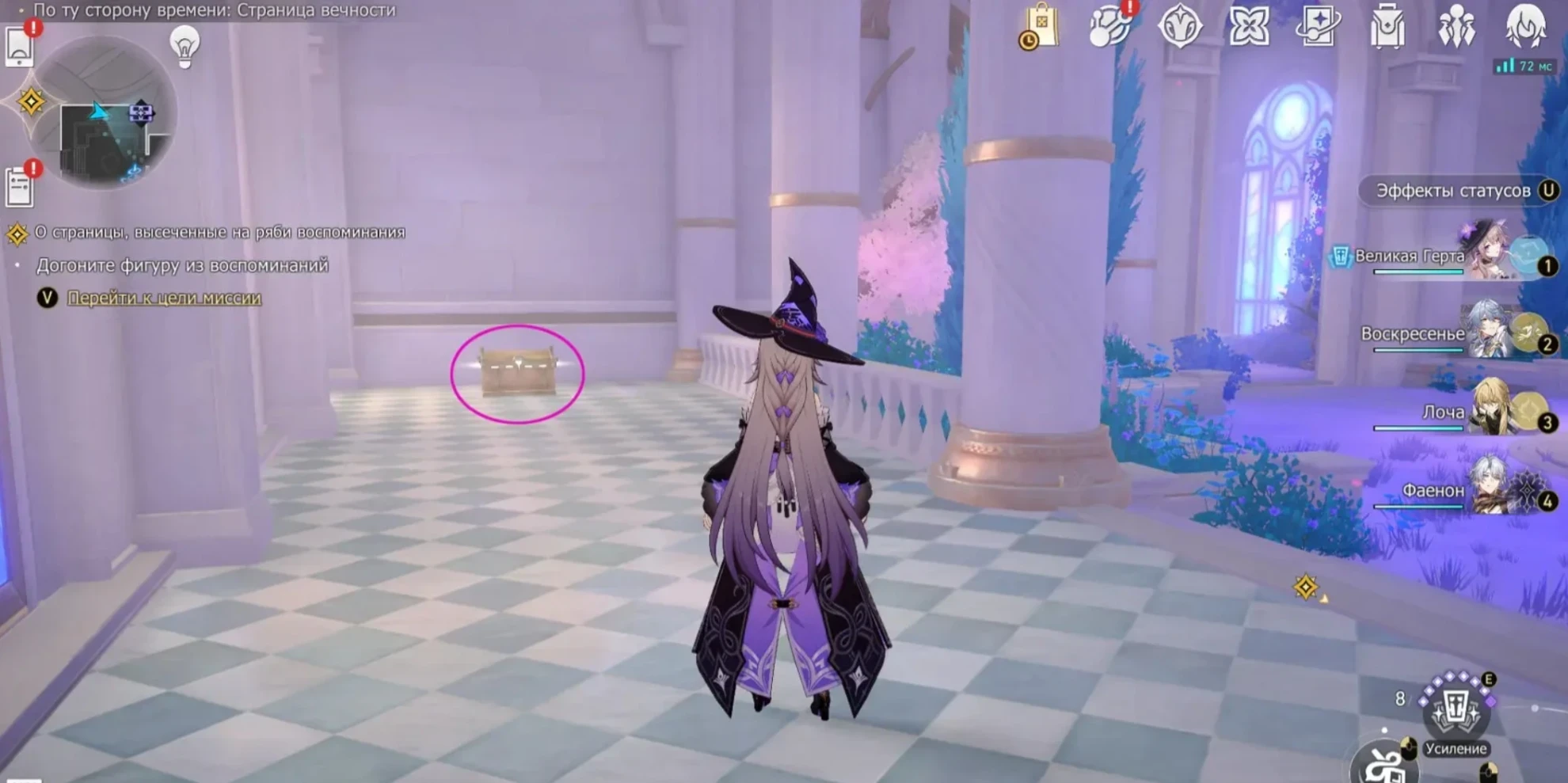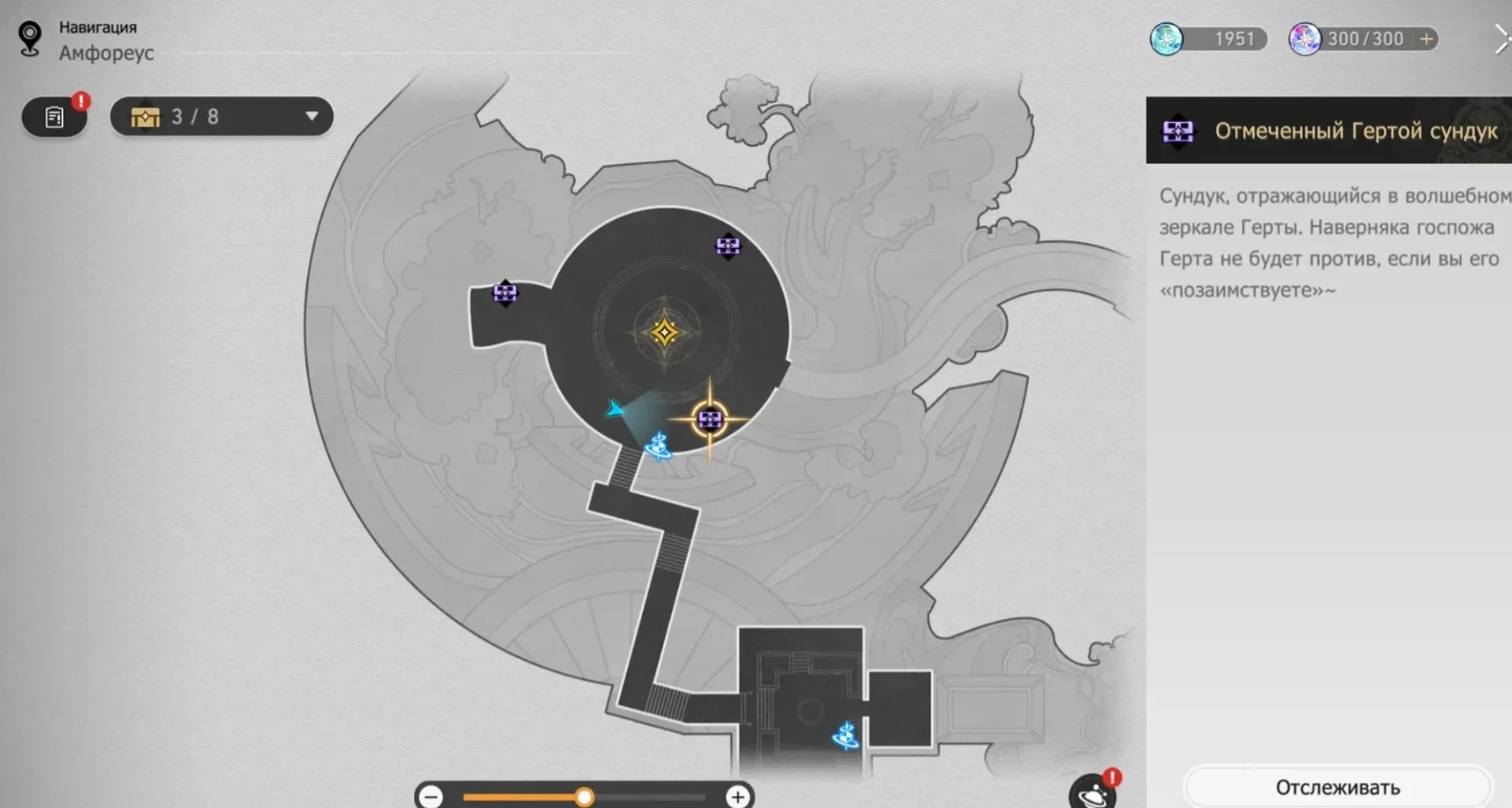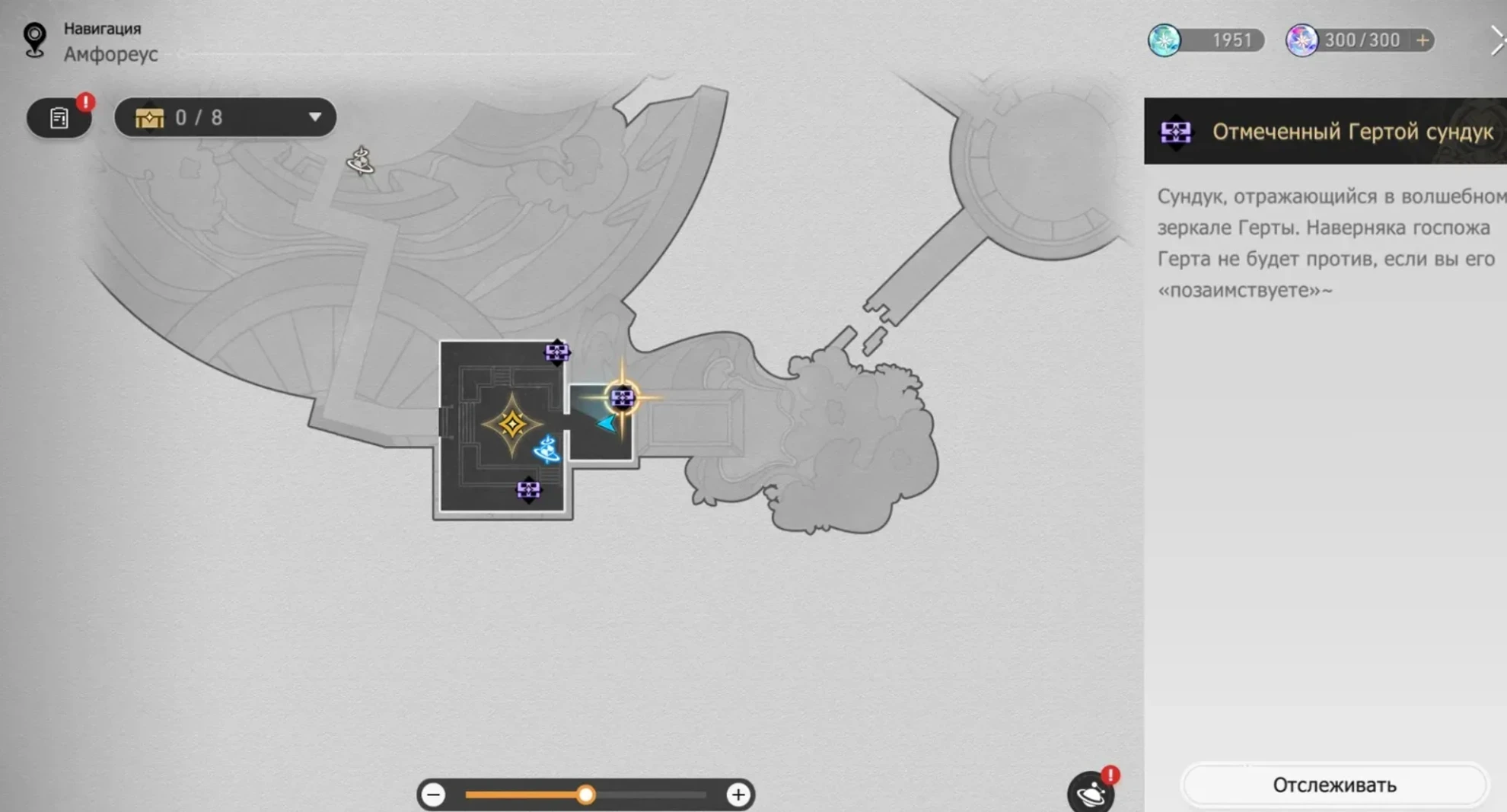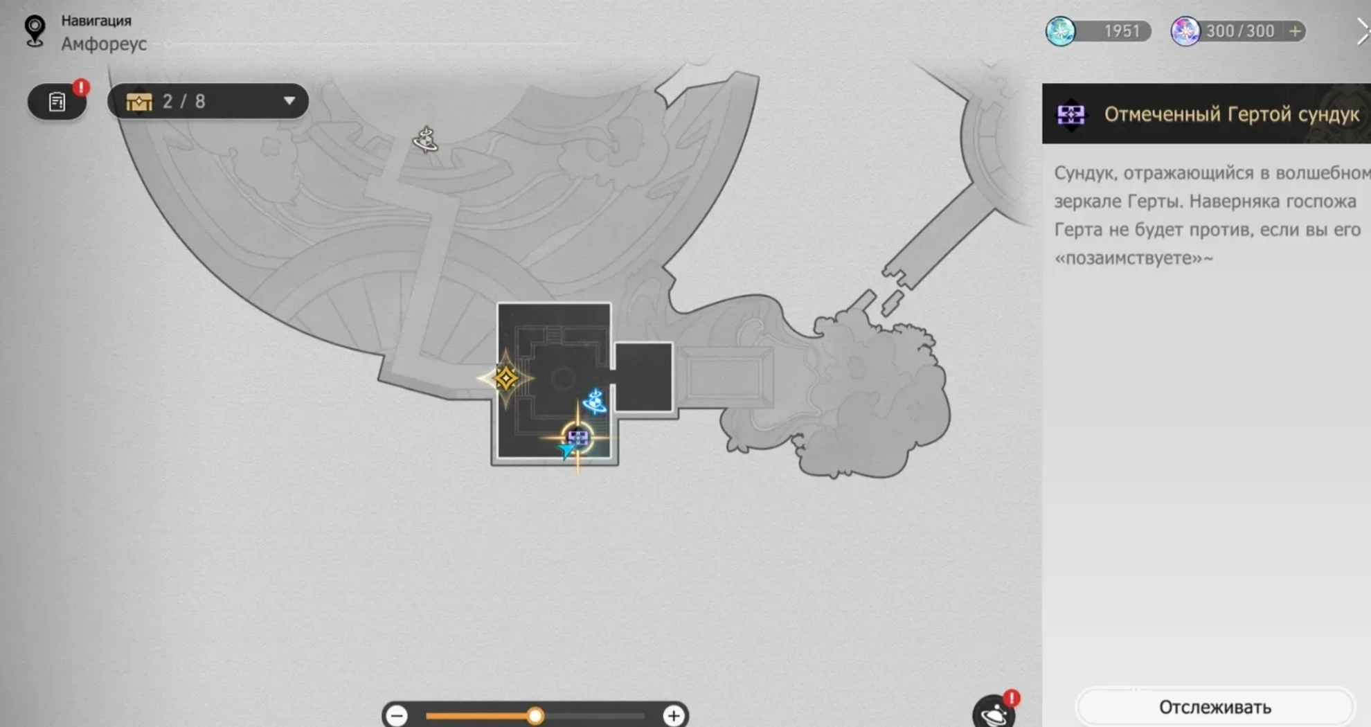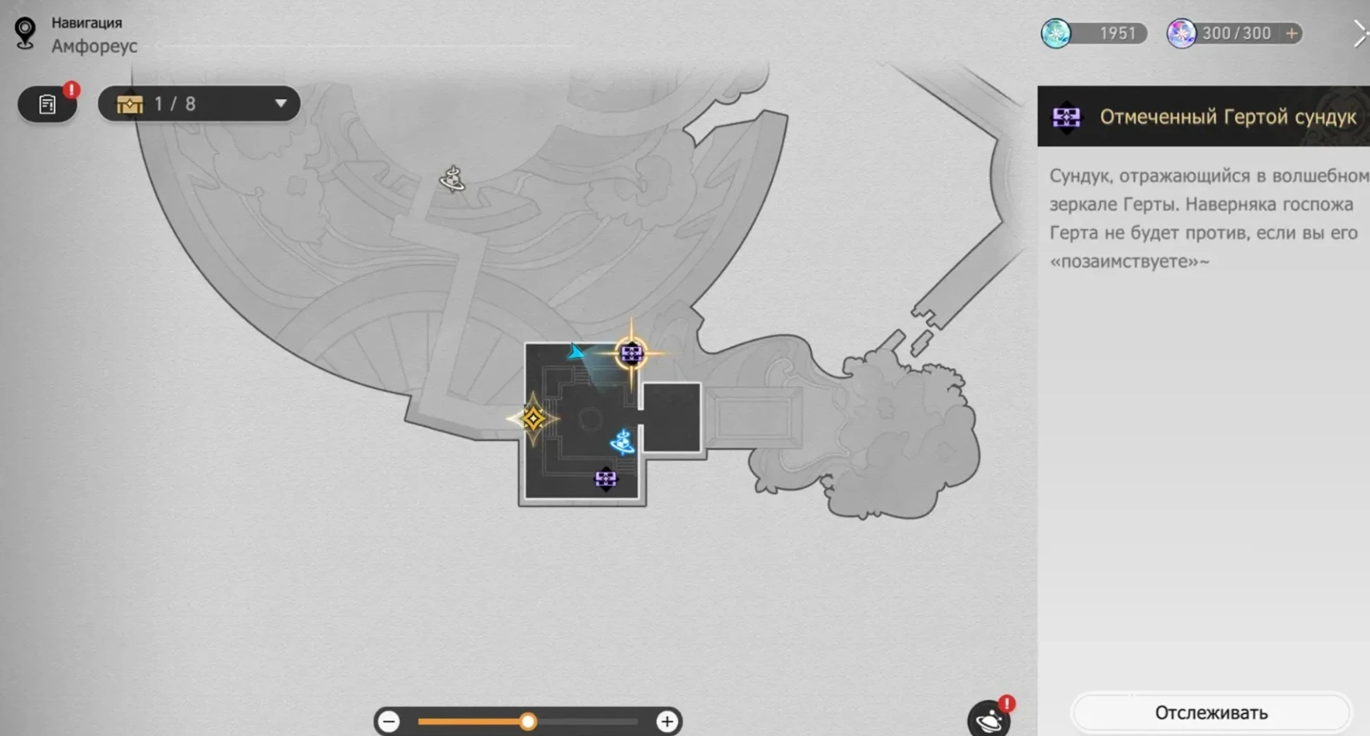Первый сундук находится слева от неактивного зеркального портала в Элизию Эйдес, в комнате к востоку от Дворика грез, в южной части локации.