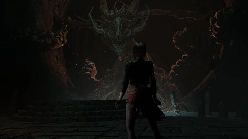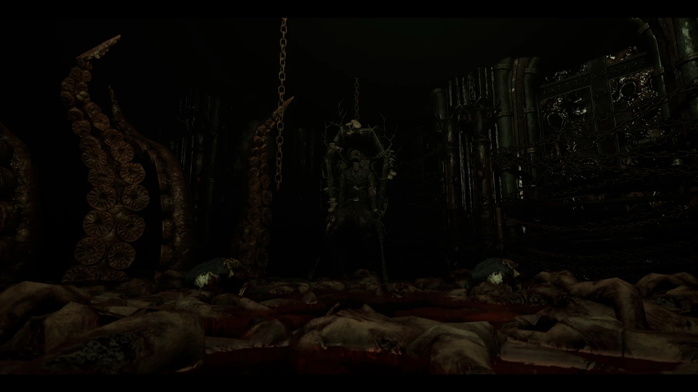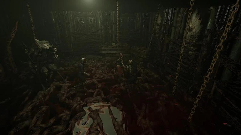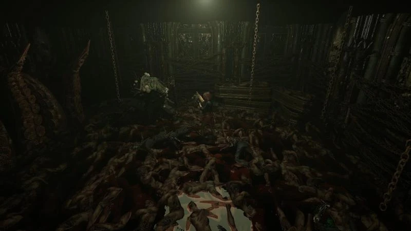Вначале осмотрите локацию и соберите все доступные боеприпасы (я нашел патроны для дробовика). Обратите внимание на два тела, прикрепленных к стенам. Взаимодействуйте с каждым из них. Во время проведения этих действий босс останется неподвижным (стоит учитывать пару секунд задержки, следовательно, он может совершить внезапную атаку). Никакие вспомогательные инструменты не нужны, просто нажмите на кинжал в груди каждого трупа.