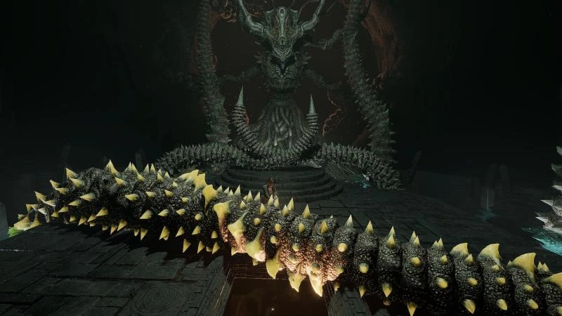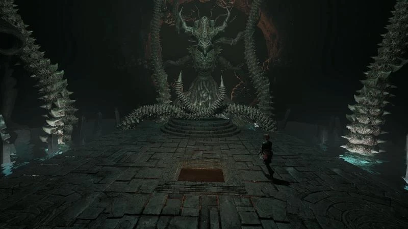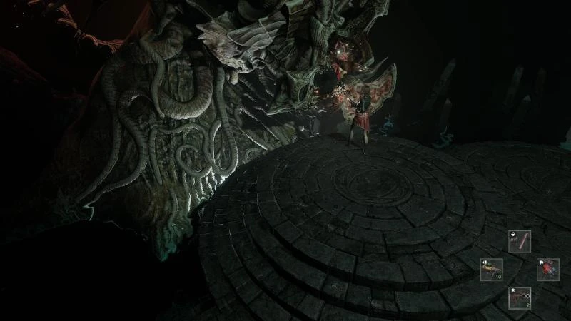 Ключевым элементом станет уклонение. У противника пять щупалец: четыре по периметру арены и одно, появляющееся из углубления в центре. Атаки начинаются с центрального щупальца. Уклониться от него бегством невозможно. Необходимо, держа оружие, зажать правую кнопку мыши и нажать Shift непосредственно перед ударом щупальца.