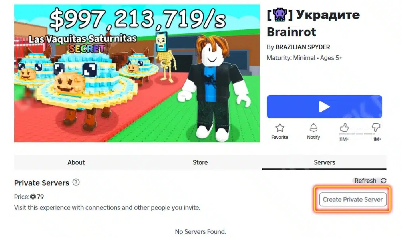Персональные серверы обеспечивают более приятную игру, чем публичные лобби в "Стил э Брейнрот" на платформе Роблокс, поэтому с друзьями рекомендуется играть именно через них. Добавьте эту инструкцию в сохраненные, чтобы вовремя занять освободившееся место, когда обновятся доступные платные серверы.