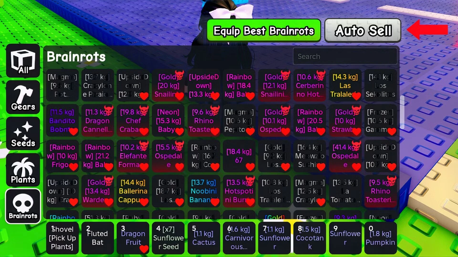 Функцию авто-продажи можно использовать не только для автоматической продажи ненужных брейнротов, но и для поиска конкретных брейнротов в вашем инвентаре.