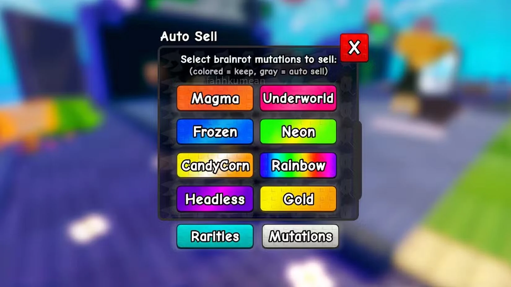 - Включите авто-продажу для остальных брейнротов: Для всех остальных редкостей и мутаций, которые вы хотите автоматически продавать, убедитесь, что соответствующие значки остались серыми. Это означает, что авто-продажа включена для этих брейнротов, и они будут автоматически продаваться, как только попадут в ваш инвентарь.