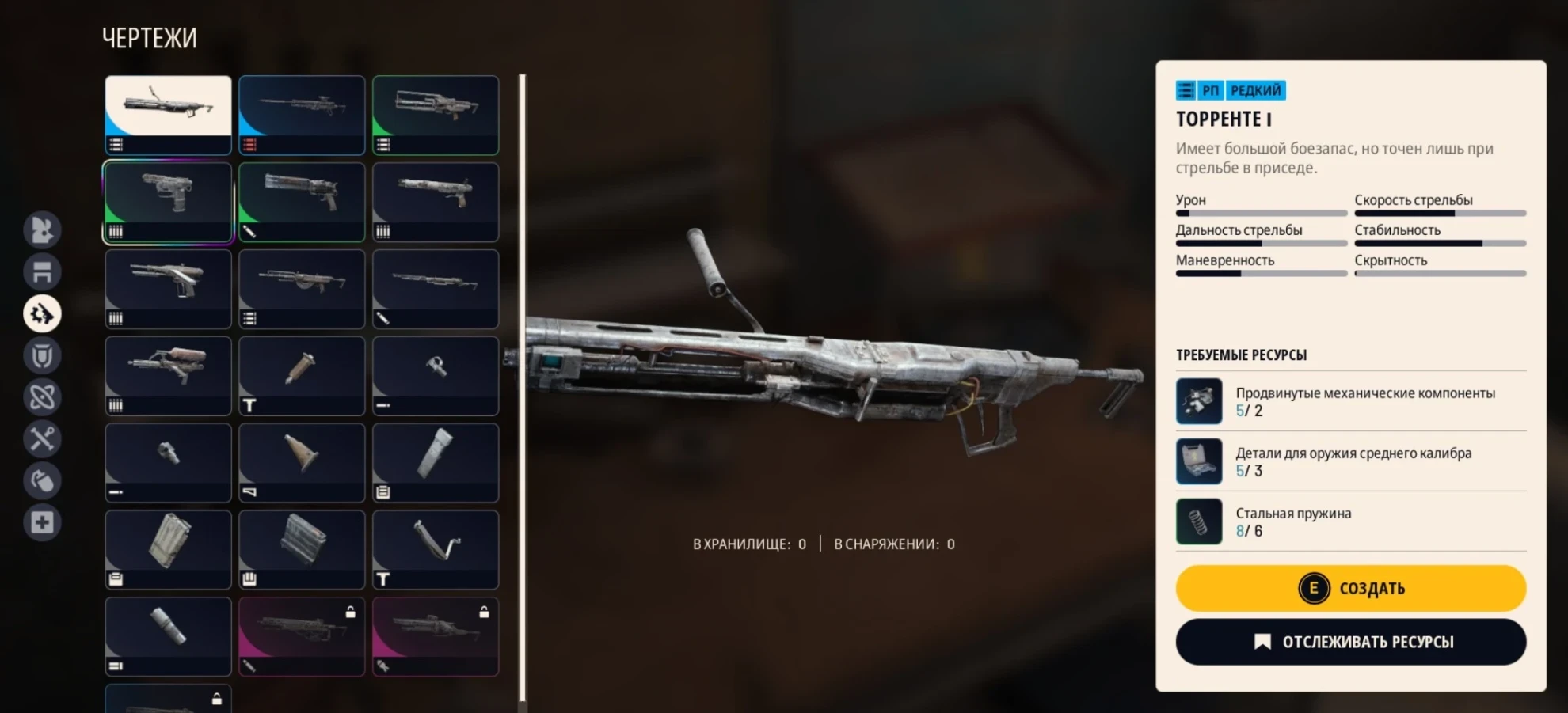 С другой стороны, "Торренте" наносит значительный и стабильный урон, превосходя по этому показателю даже эпическую "Беттину". Начальный магазин вмещает 60 патронов, и этот показатель можно улучшить, но это не является приоритетной задачей. Оптимально оставить «Торренте» на первом уровне. На ближней дистанции ручной пулемёт способен уничтожать как рейдеров, так и вражеские машины.