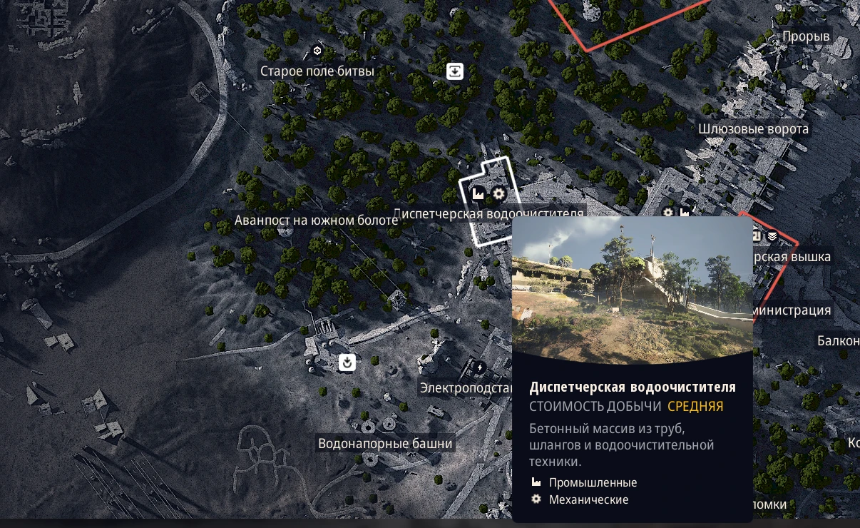 Этот район, вопреки ожиданиям, не входит в число лучших мест для добычи, по нескольким причинам. Доступ к самым ценным ресурсам здесь ограничен без карты-ключа от дамбы, расположенной в районе водоочистки.