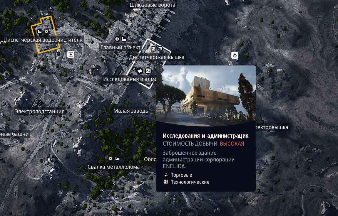 Неподалеку от предыдущей точки интереса располагается "Электроподстанция", привлекательная обилием ценного электротехнического снаряжения. Если вы нуждаетесь в электронных компонентах или устройствах, это место может стать удачной начальной точкой вашего маршрута, к тому же, она находится ближе к центру игровой карты.