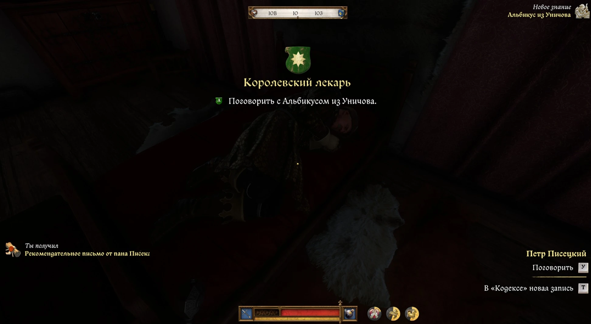 На следующий день в этом месте появится фиолетическая метка с названием Mysteria Ecclesiae. По нему вам нужно будет найти владельца крепости Петра Писецкого, с которым начинается первый квест DLC.