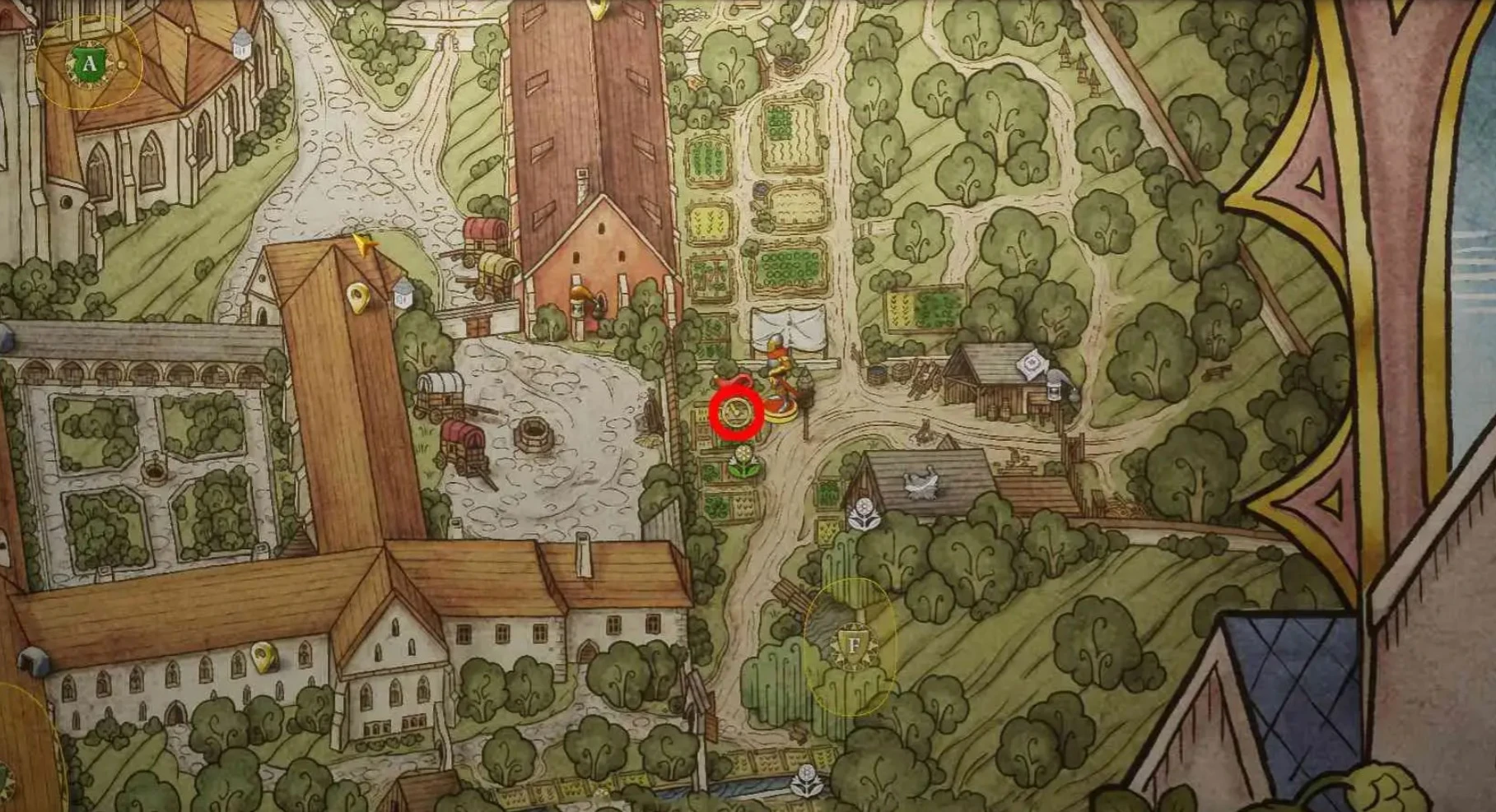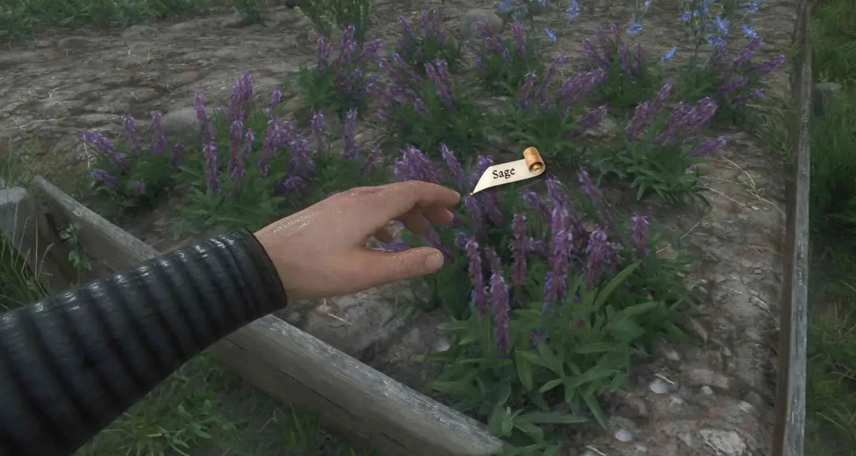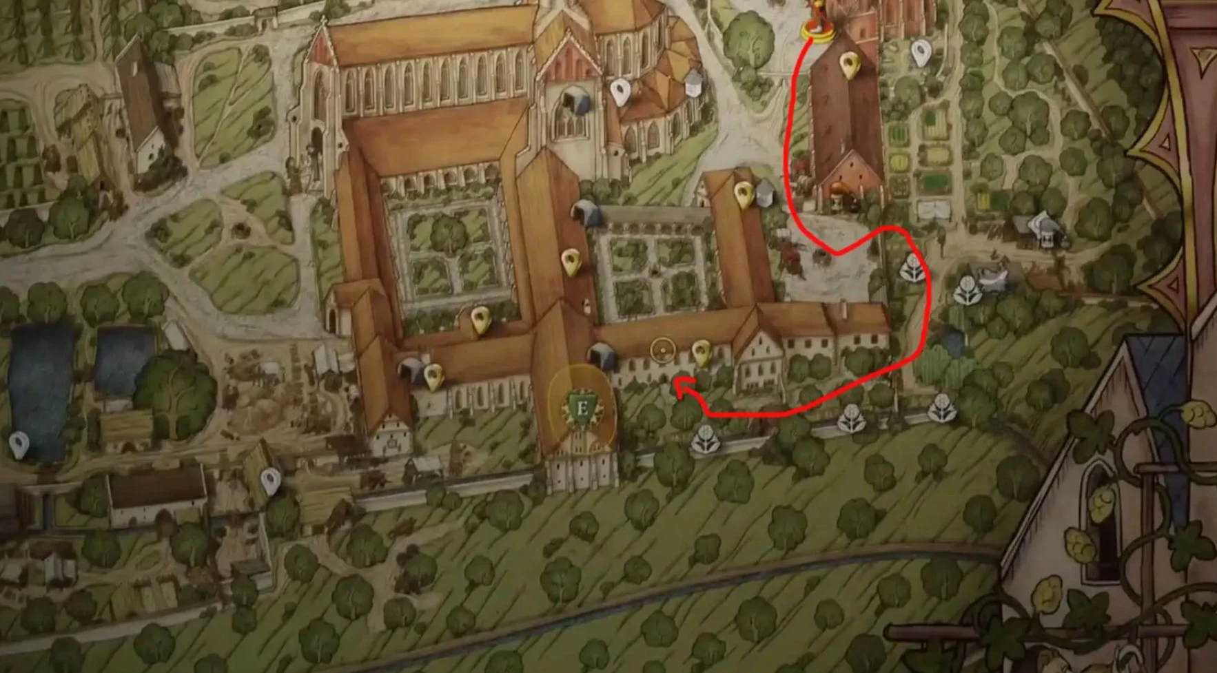 Необходимые растения можно найти в Лесосаде, расположенном в юго-восточной части монастырской территории. Там находятся хозяйственные постройки и грядки с различными травами, включая мяту. Ищите небольшие голубоватые цветки с тонкими зелеными листьями. На скриншотах ниже продемонстрировано их точное местоположение. Рекомендуется собрать больше мяты, так как она понадобится в квесте "Профилактика".