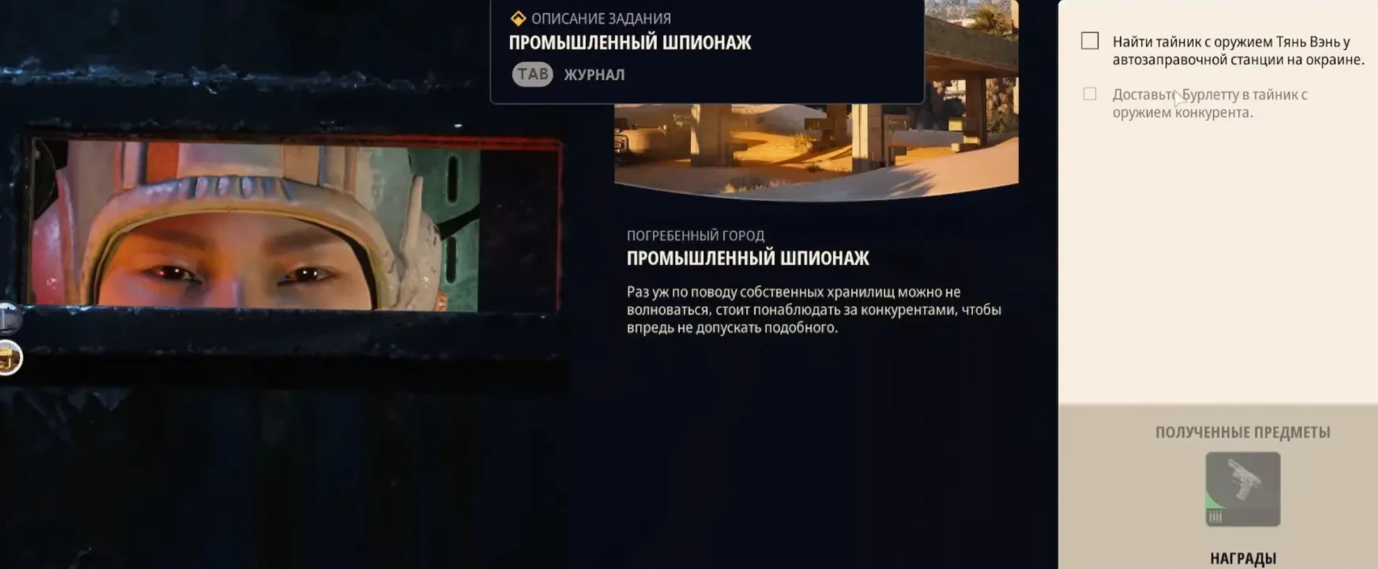 Ключевым условием для успешного завершения этого квеста является наличие пистолета "Бурлетта". Вы получите его от Тянь Вэня в момент принятия задания. Это оружие не предназначено для ведения боя, а исключительно для размещения в тайнике. Если вы забудете его, вам придется начинать все с самого начала.