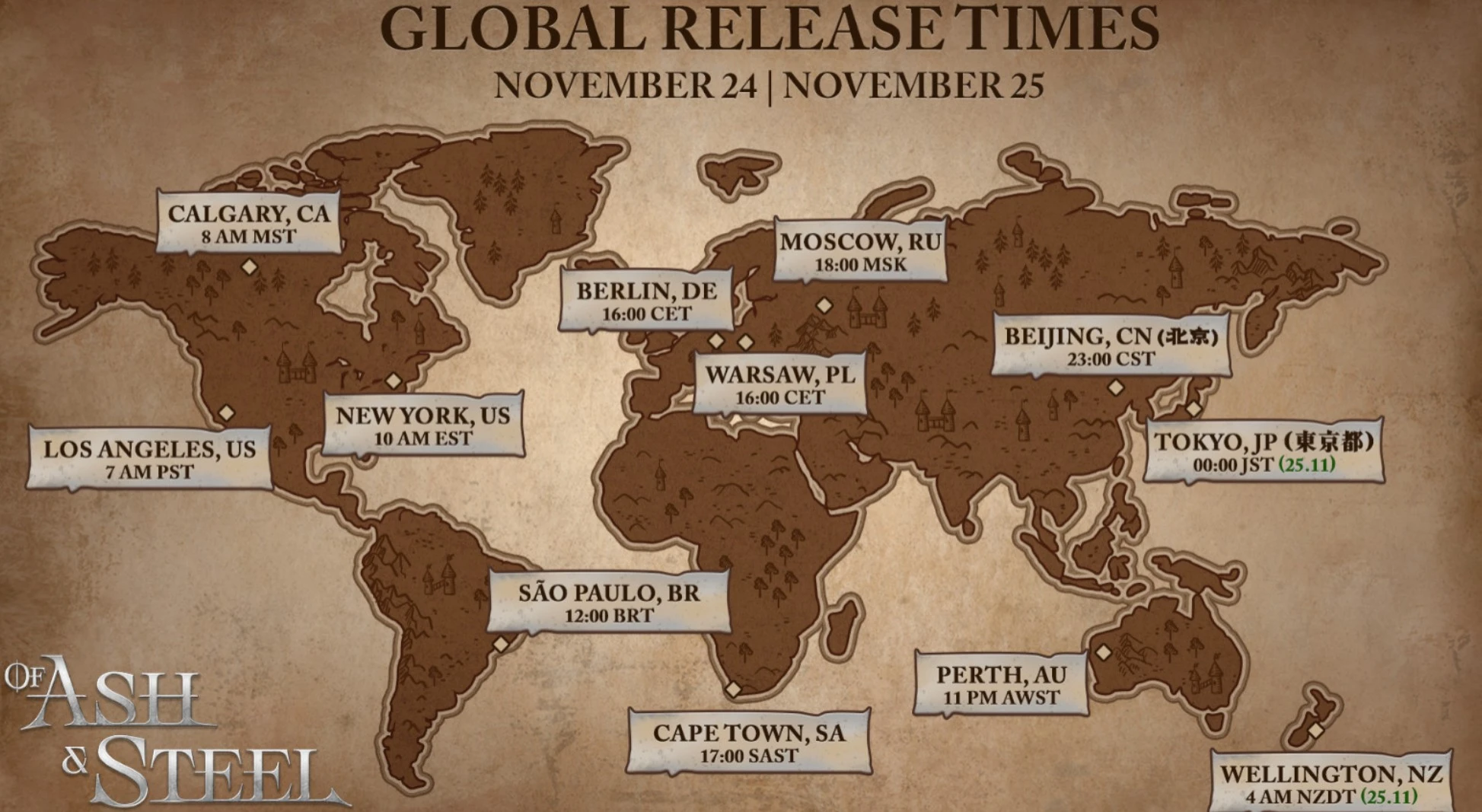 Студия Fire & Frost раскрыла подробности о долгожданной ролевой игре Of Ash and Steel. Релиз намечен на завтра, 24 ноября, в 18:00 по московскому времени. Изначально выход планировался раньше, но разработчики решили уделить дополнительное время полировке проекта.
