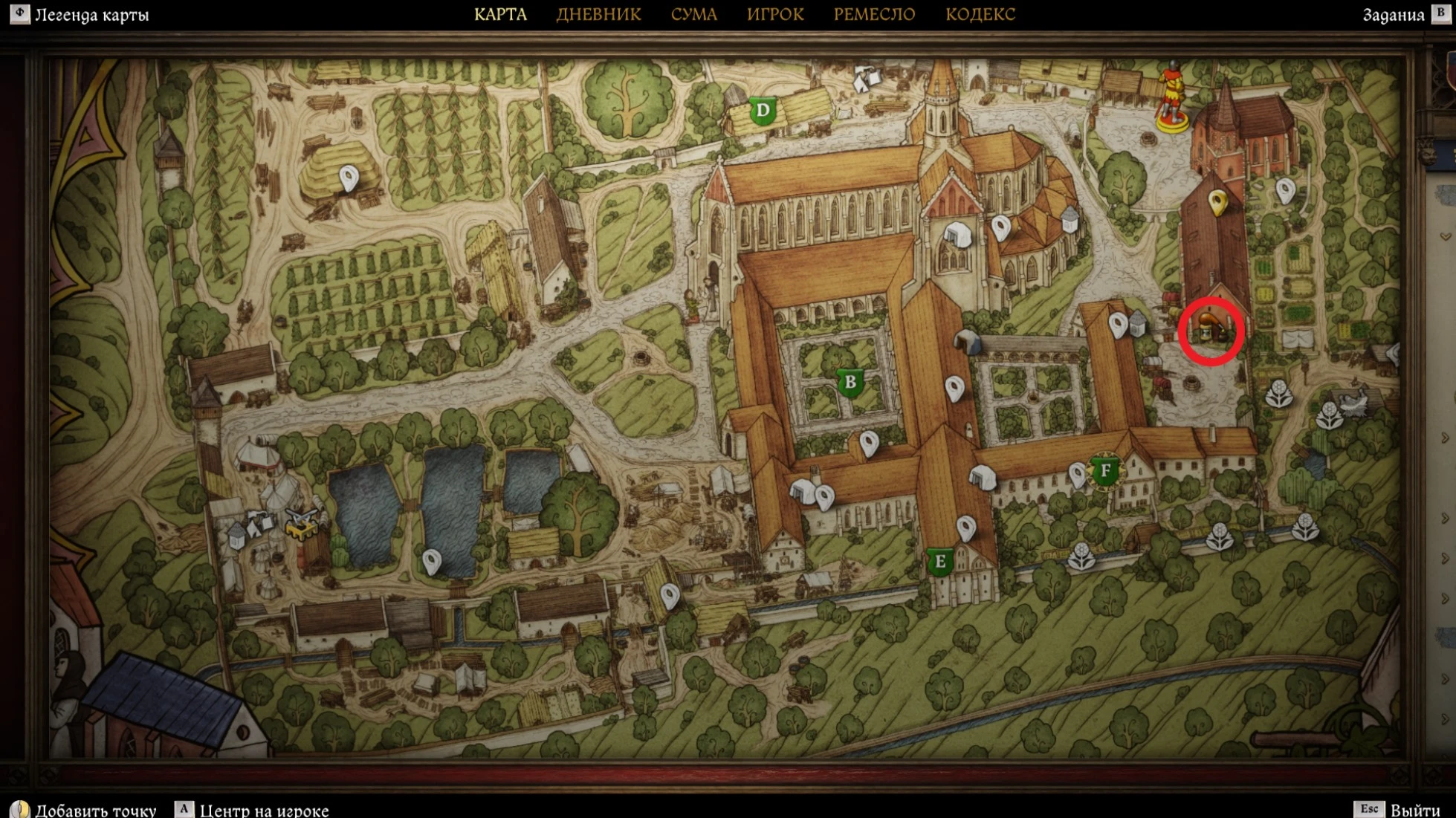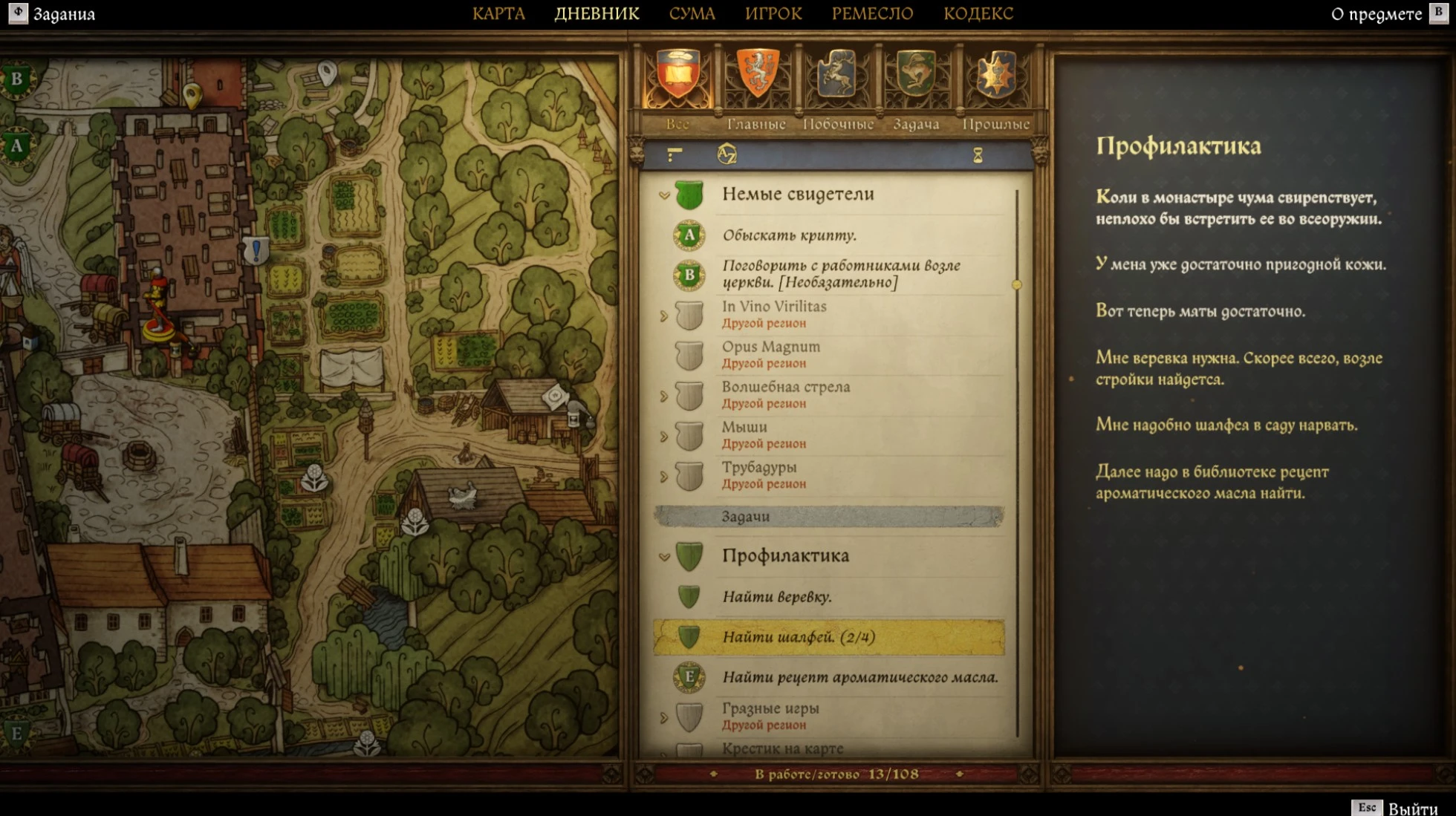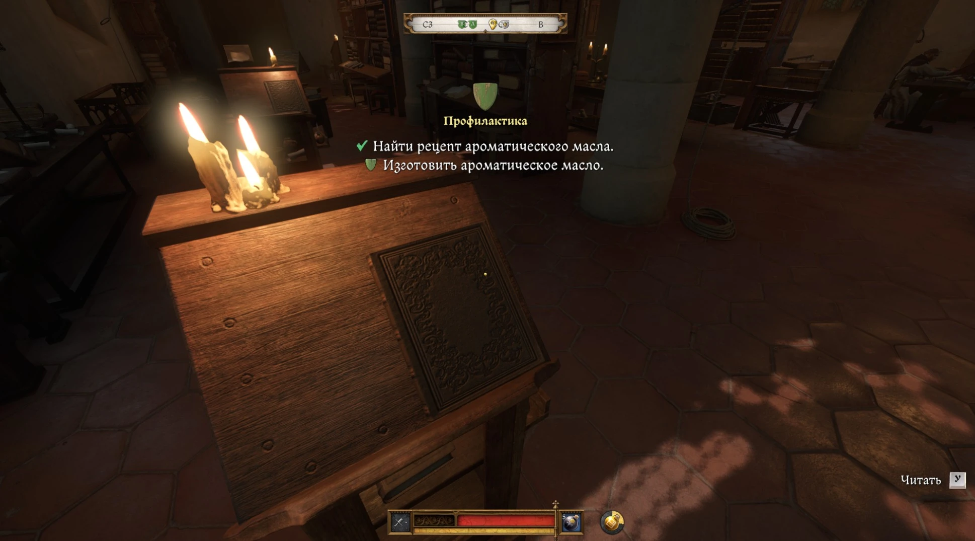 Собрав все компоненты для чумной маски, отправляйтесь в библиотеку монастыря, расположенную в южном крыле.