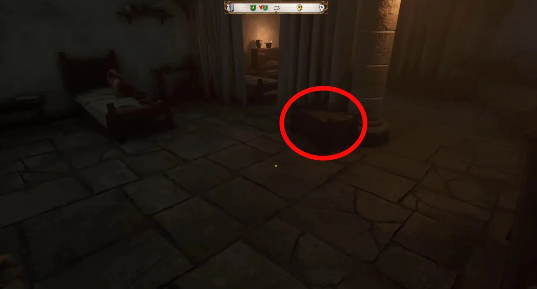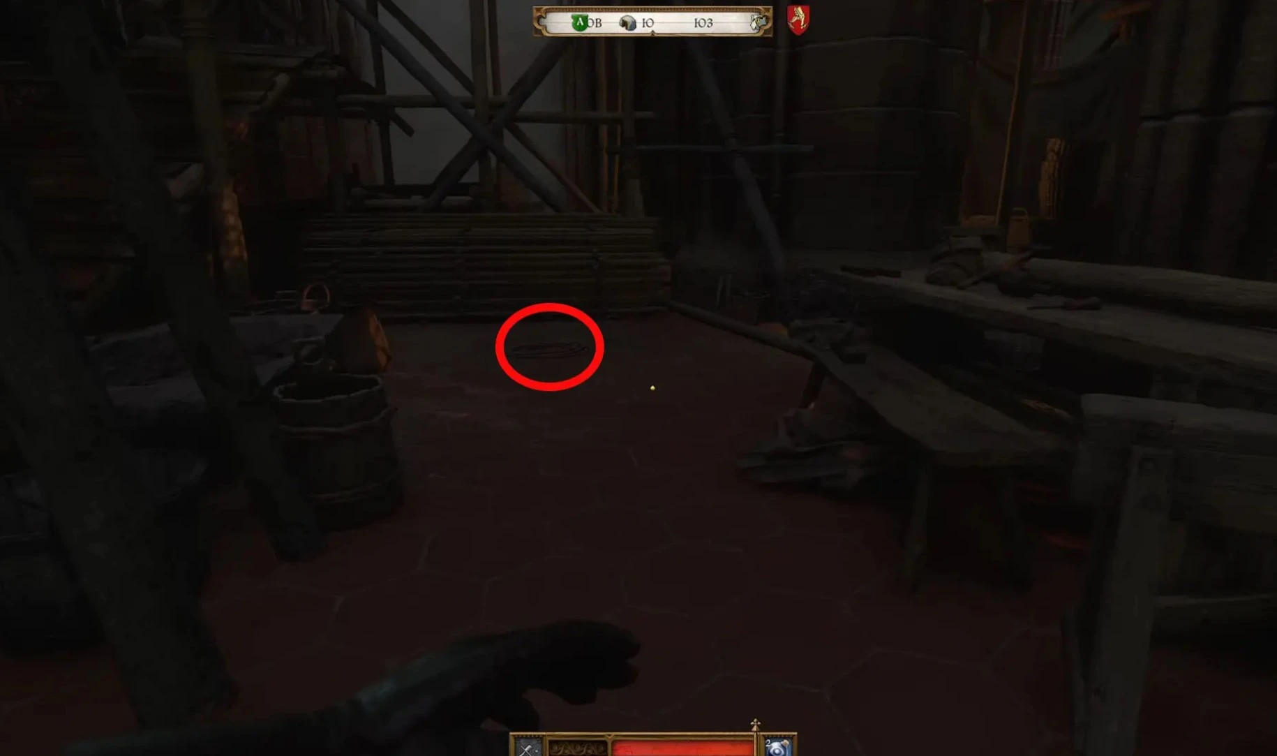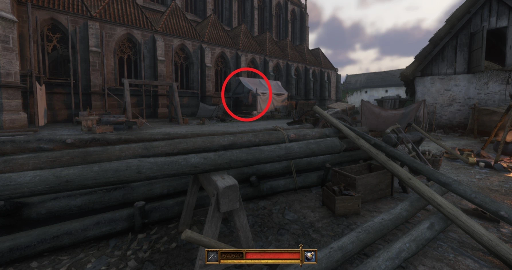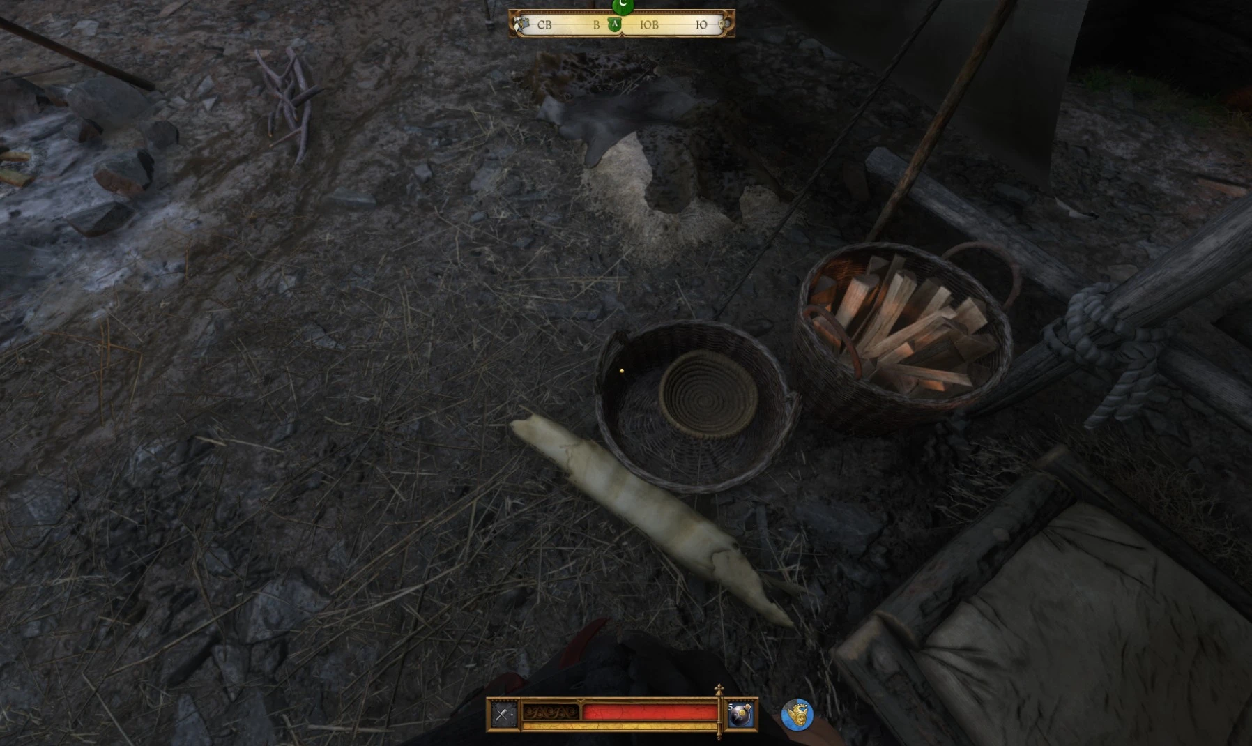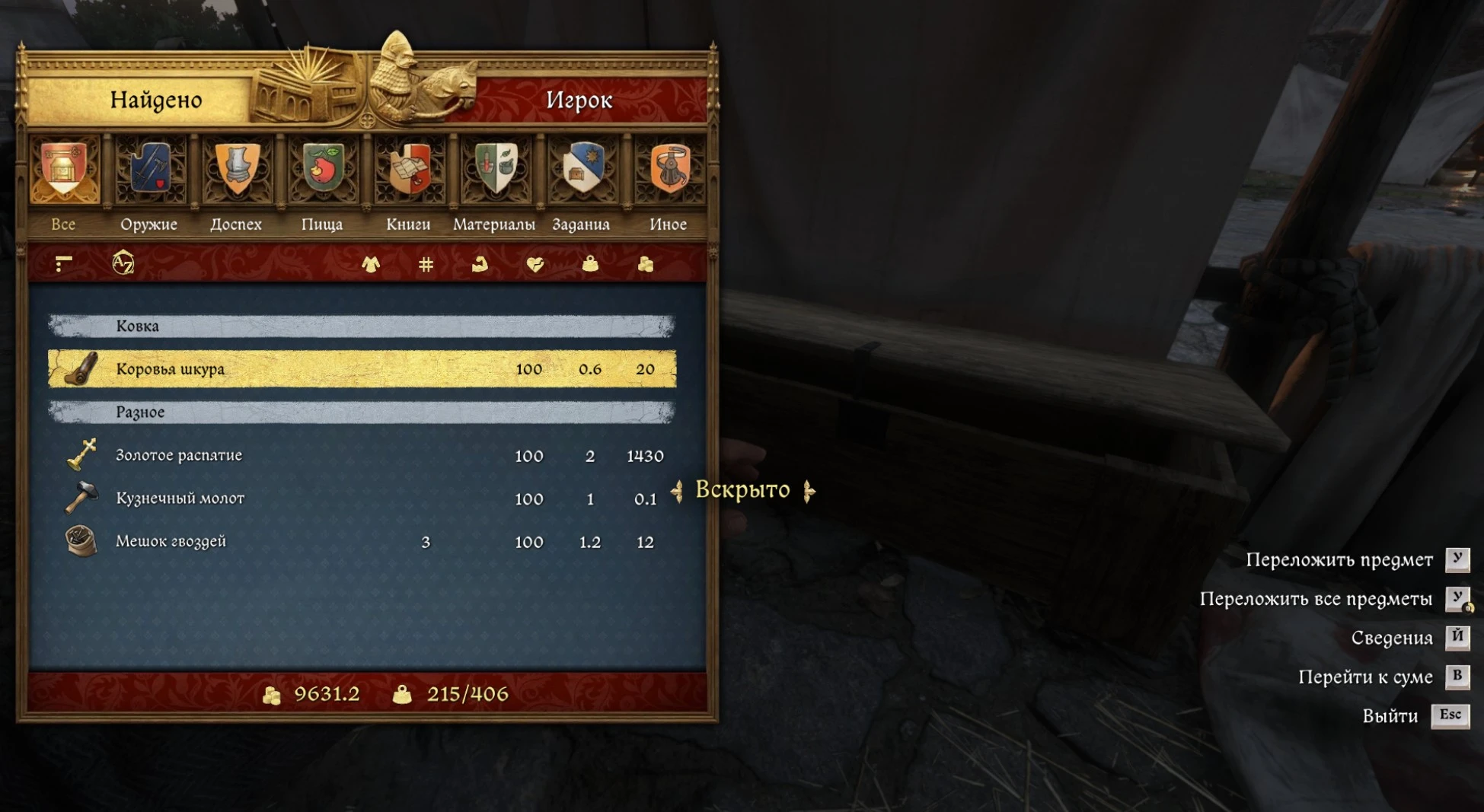 При наличии отмычки (их не отбирают при входе, в отличие от оружия и доспехов), можно взломать простой замок сундука в палатке и получить коровью шкуру, а также другие ценные вещи, если вас не пугает небольшой грех.