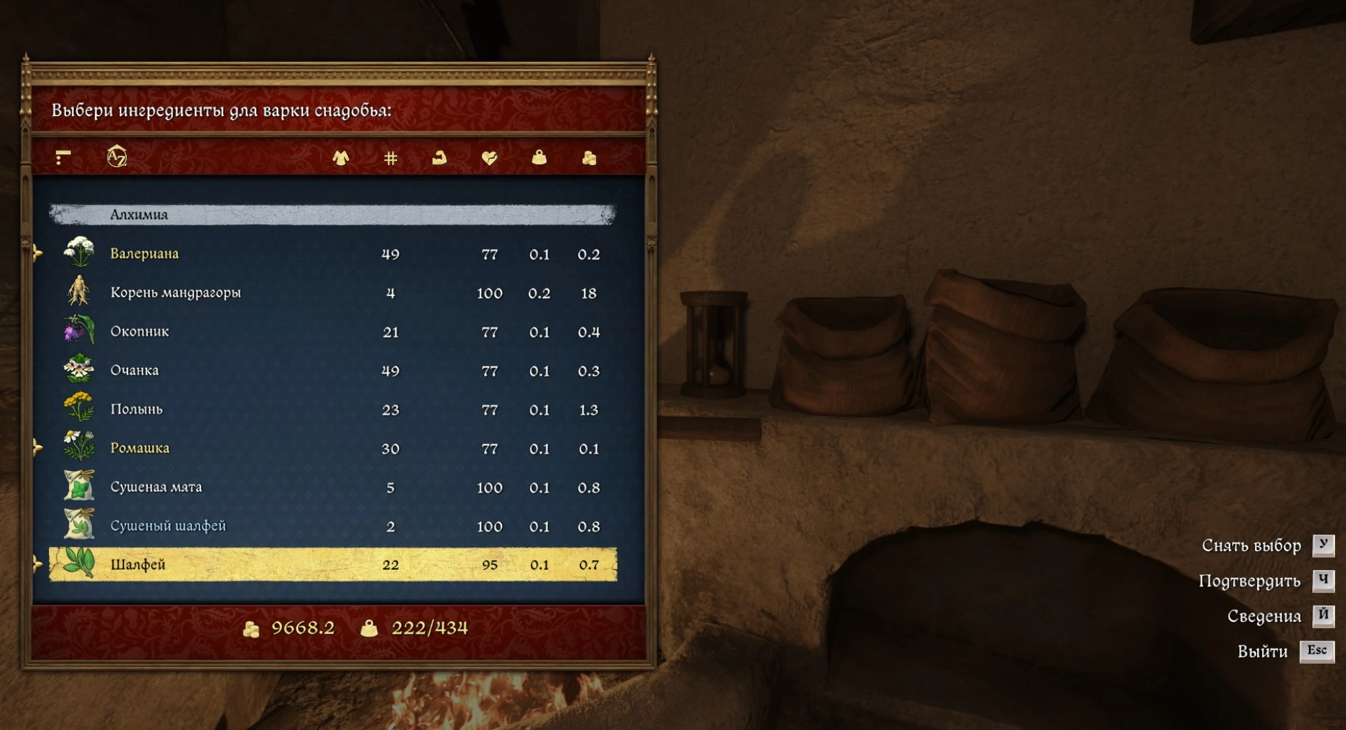 Шалфея соберите побольше, так как еще 8 штук потребуется для чумного капюшона.