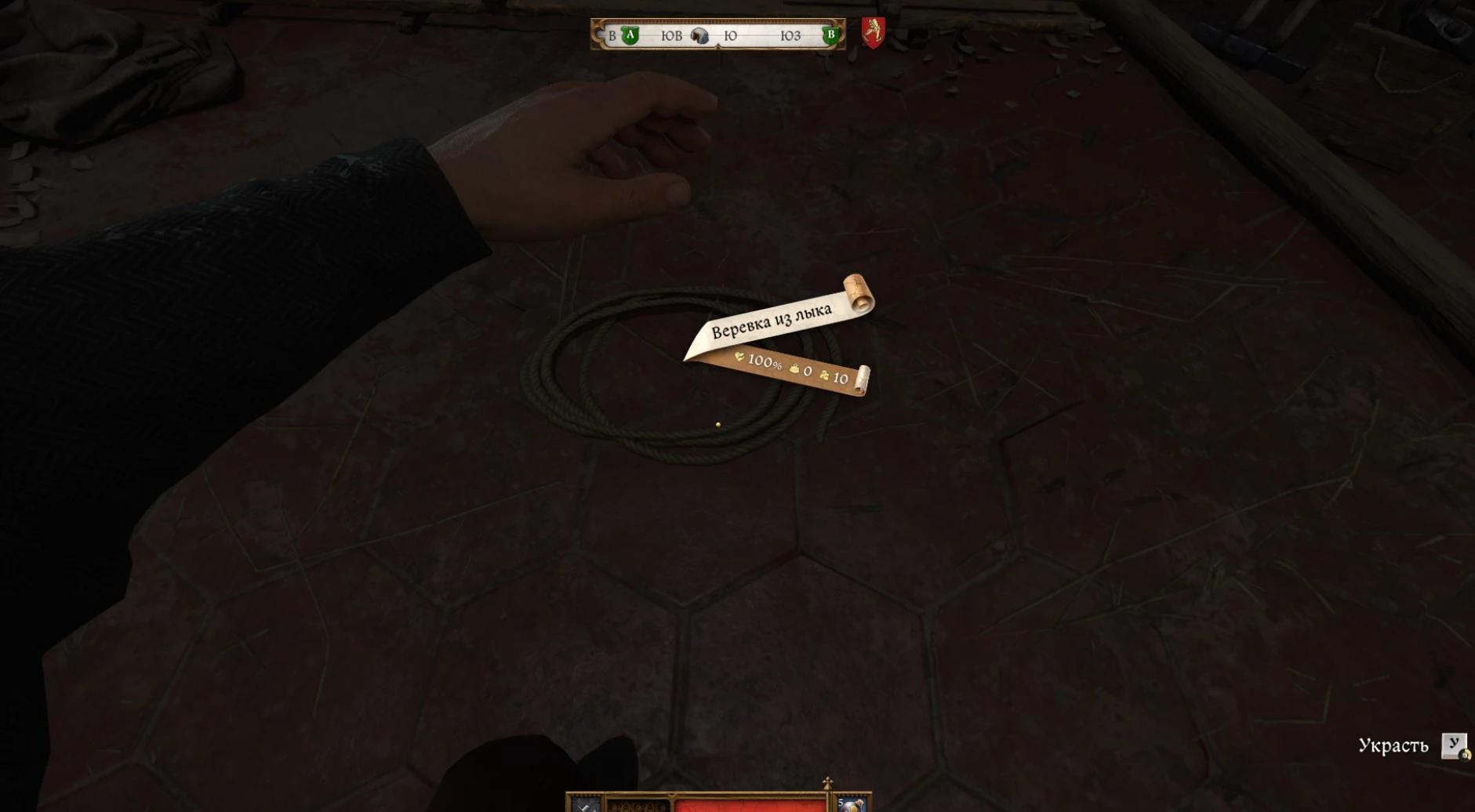 Далее, без каких-либо препятствий, доберитесь до точки, указанной на карте, чтобы взять веревку, лежащую на полу.
