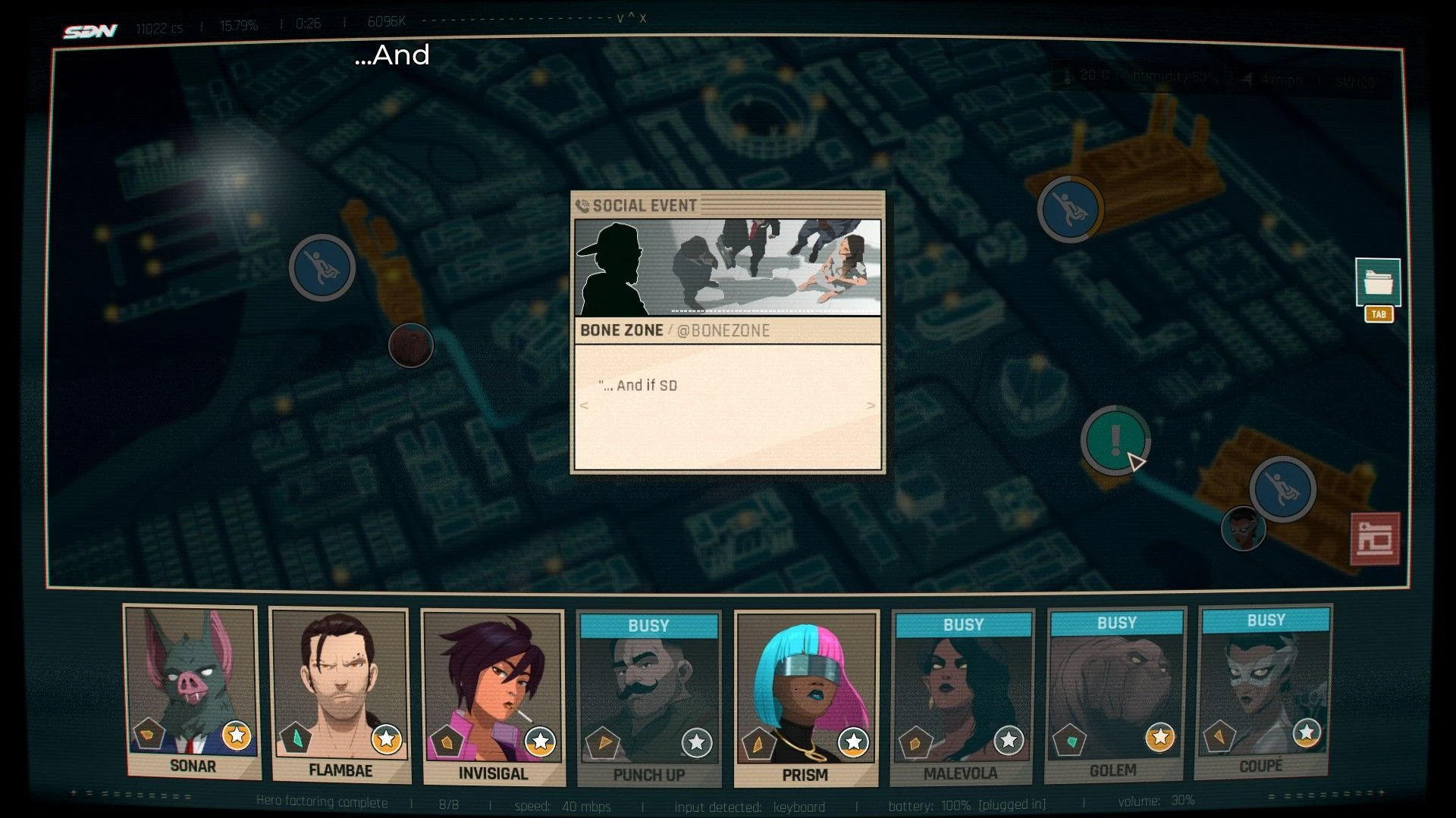Dispatch отличается от игр Telltale и обладает своей уникальной концепцией. Хотя сюжетные линии выглядят похожими, игра не ограничивается приключенческой механикой. Мы выбираем варианты диалогов под давлением времени, участвуем в QTE-последовательностях (но их можно отключить), но на этом наш прямой контроль над Робертом заканчивается. Вначале мне этого не хватало, но я быстро привыкла к тому, что эта часть игрового процесса, по сути, интерактивная серия с выбором.