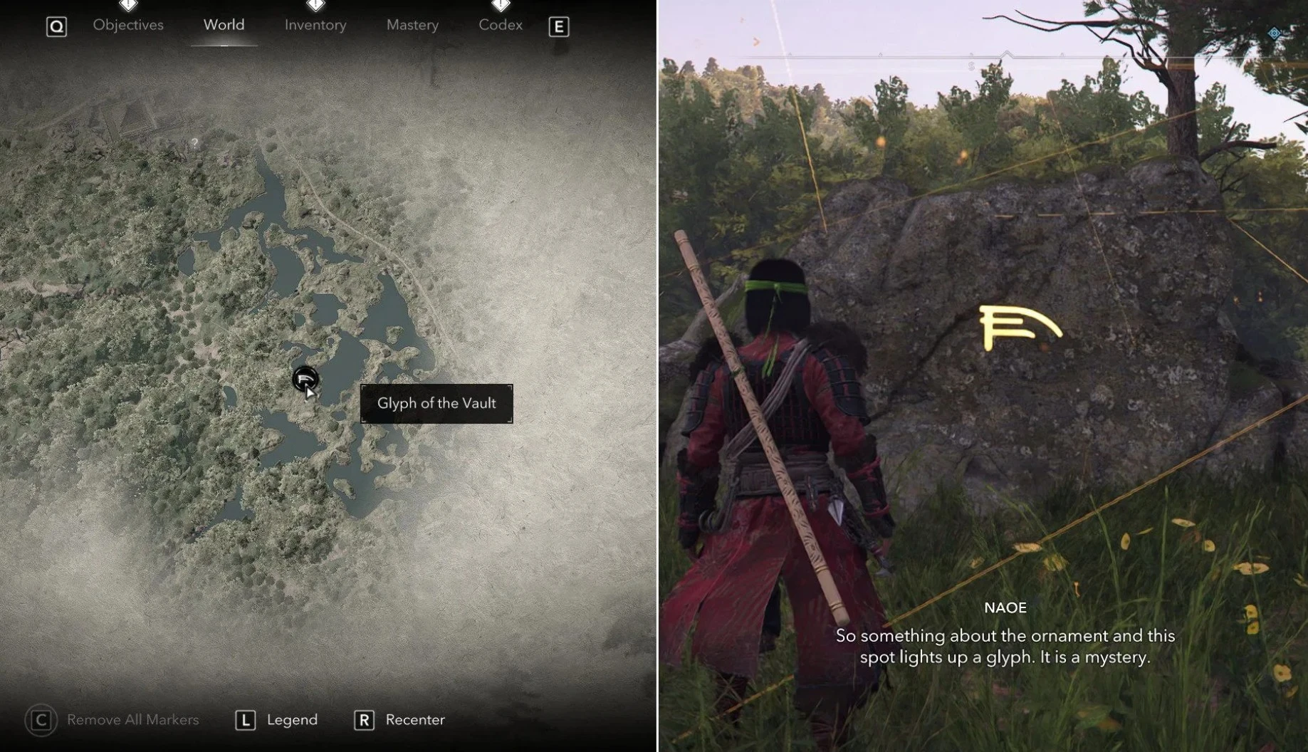 Обнаружив глиф, вернитесь к месту встречи с Кину и Канэ. Повторно поговорите с ними и подтвердите готовность раскрыть секрет запечатанной двери.