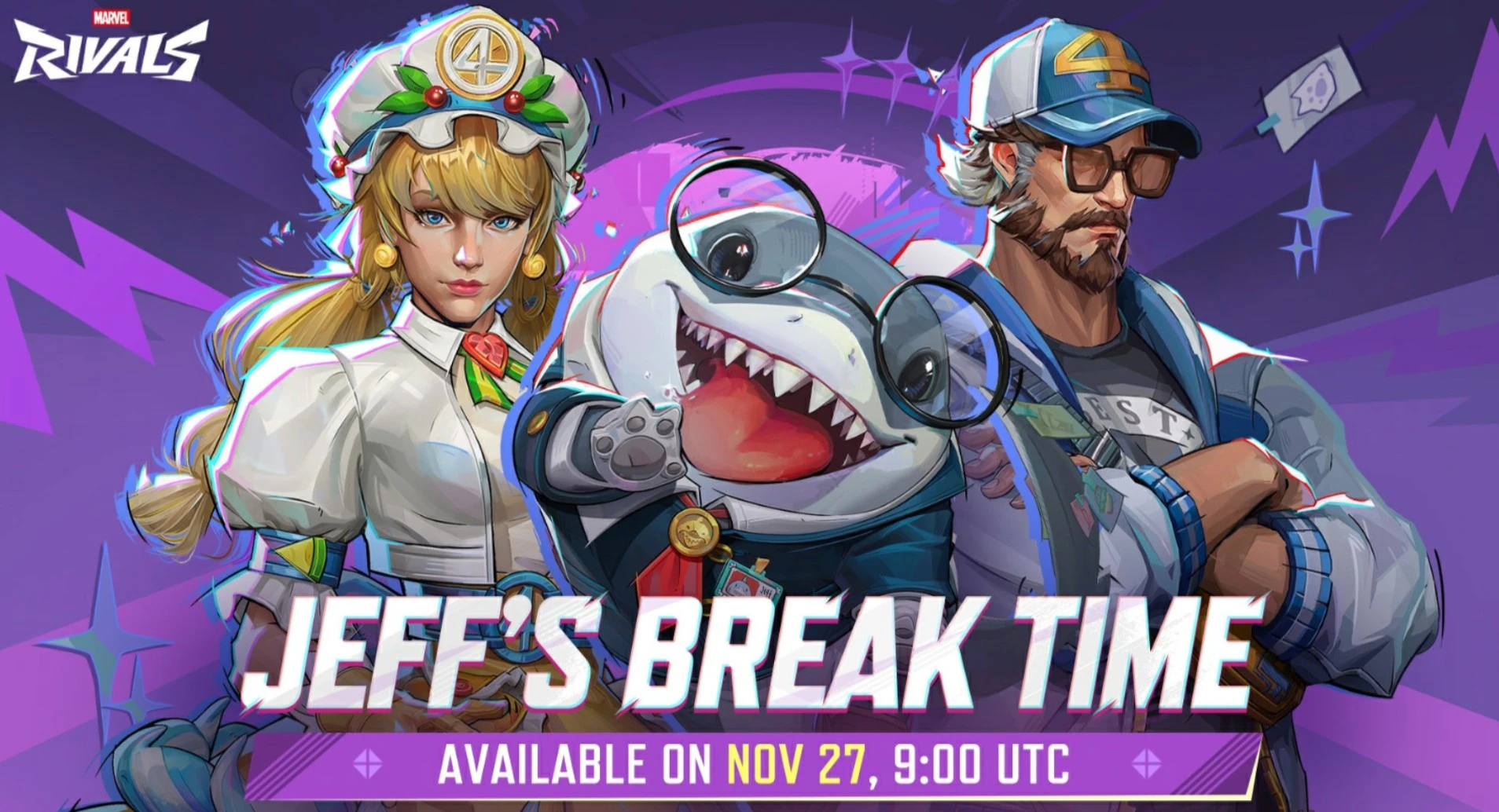 В обновлении появился мини-боевой пропуск Jeff’s Break Time с новыми костюмами. Бесплатный наряд получит акуленок Джефф, а премиум-версия включает облики для Невидимой леди и Мистера Фантастика. В магазине доступен "конфетный" скин для Венома.