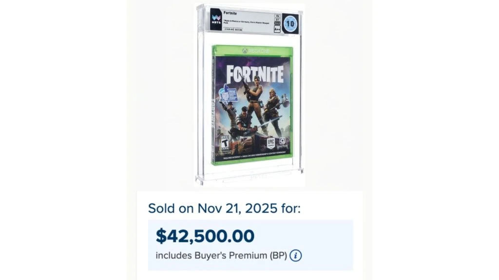 Самой дорогой физической копией Fortnite стала запечатанная коробка оригинальной игры 2017 года, проданная на аукционе Heritage Auctions за 42 500 долларов. Данный экземпляр получил наивысшую оценку «Wata 10 A++», что указывает на его идеальное состояние и оригинальную запечатанную упаковку.