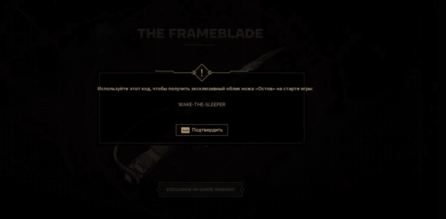 - WAKE-THE-SLEEPER — уникальный облик для ножа "Осколок".