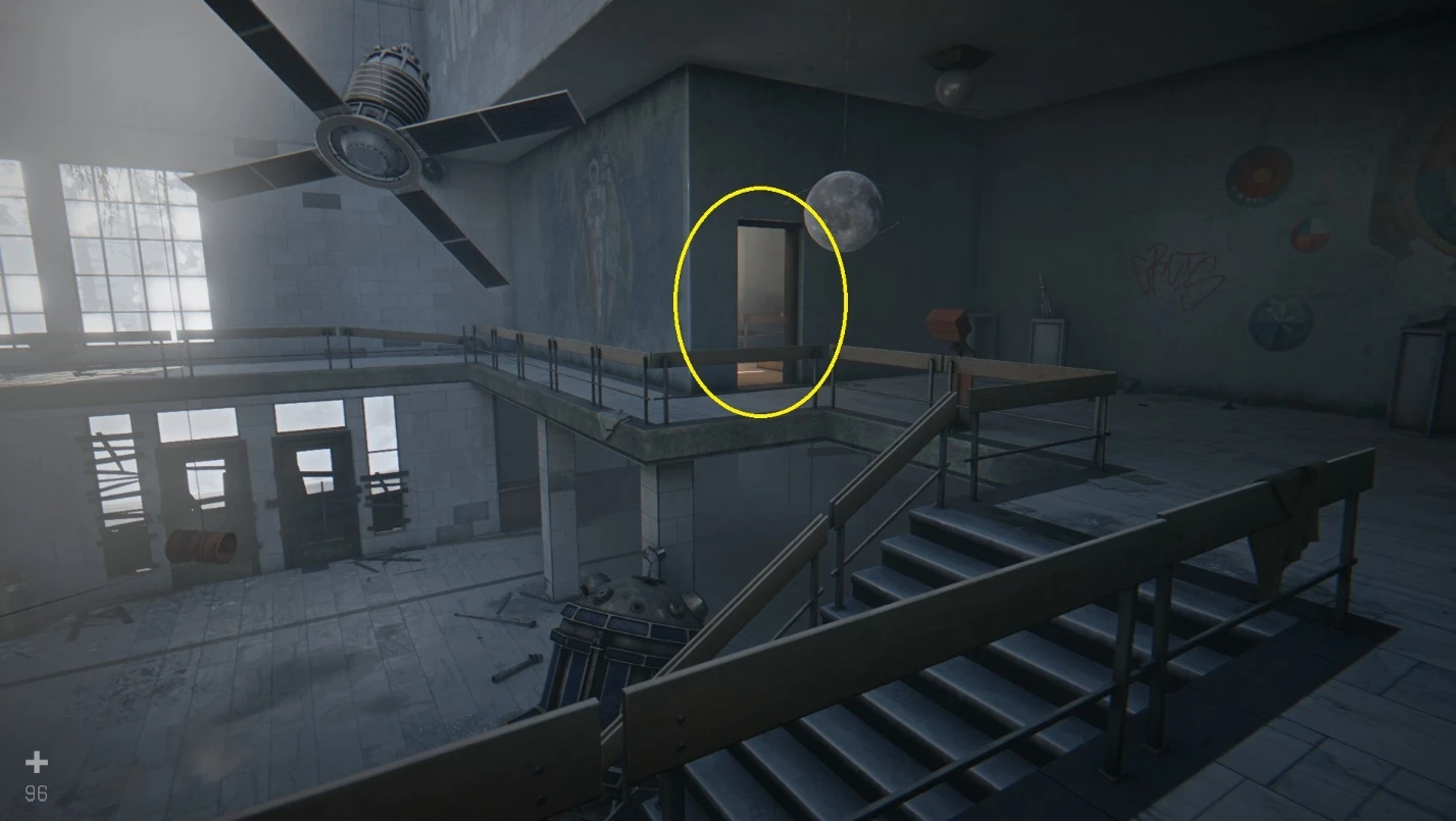 После получения конденсатора, аккумулятора и ручки для подъемника, вернитесь в центральный зал. Не спешите покидать заброшенный музей космонавтики. Поднимитесь на второй этаж и войдите в комнату слева. Здесь вы найдете необходимый видеопроектор. Подключите к нему конденсатор и посмотрите видео.