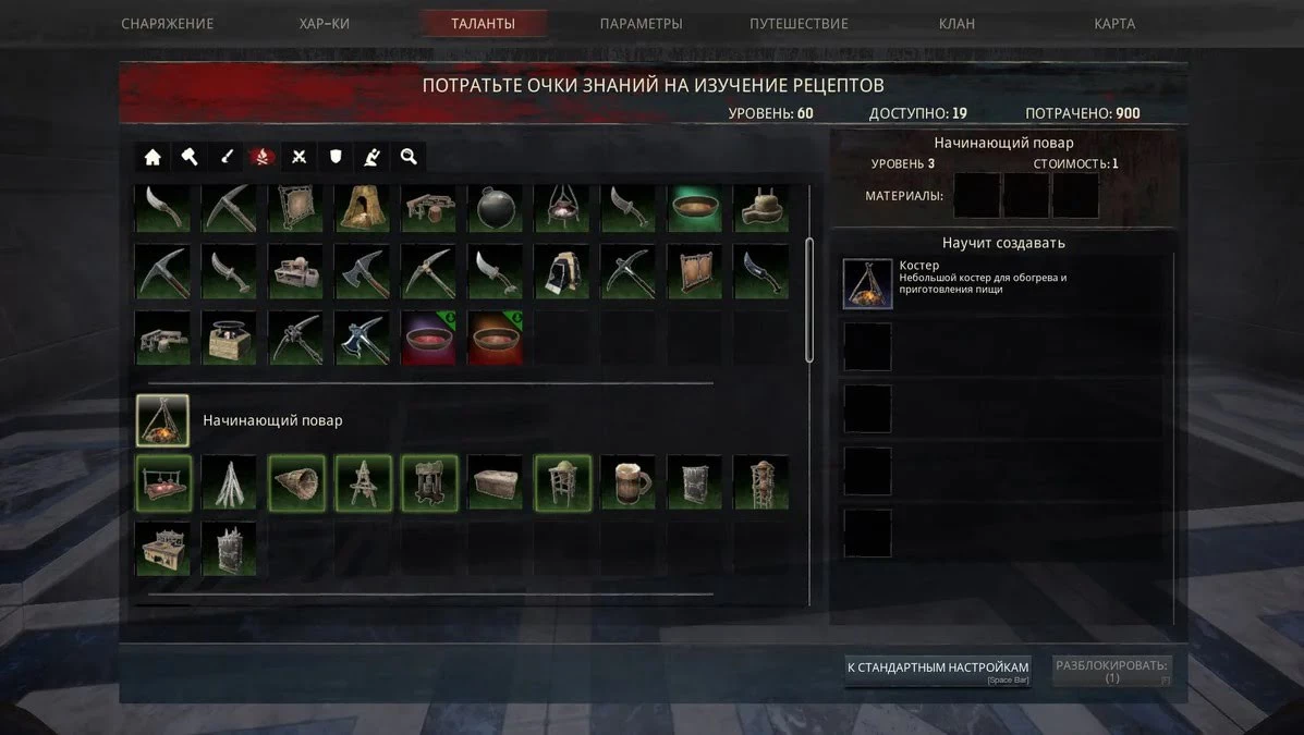 Но со временем простейших блюд из зажаренного мяса и рыбы, будет недостаточно, для выросших потребностей вашего героя. Ведь простой кусок, даже хорошего Экзотического Мяса, лечит всего ничего. И тут на выручку приходит талант 29-го уровня Печка. Вместе с ней вы получите немного более сложных рецептов приготовления пищи. Новые рецепты, теперь будут не только давать сытость и восстанавливать здоровье, но и иметь эффекты согревания или охлаждения.