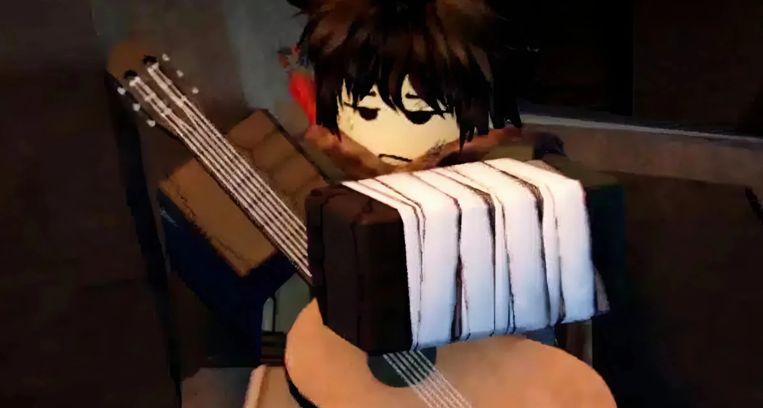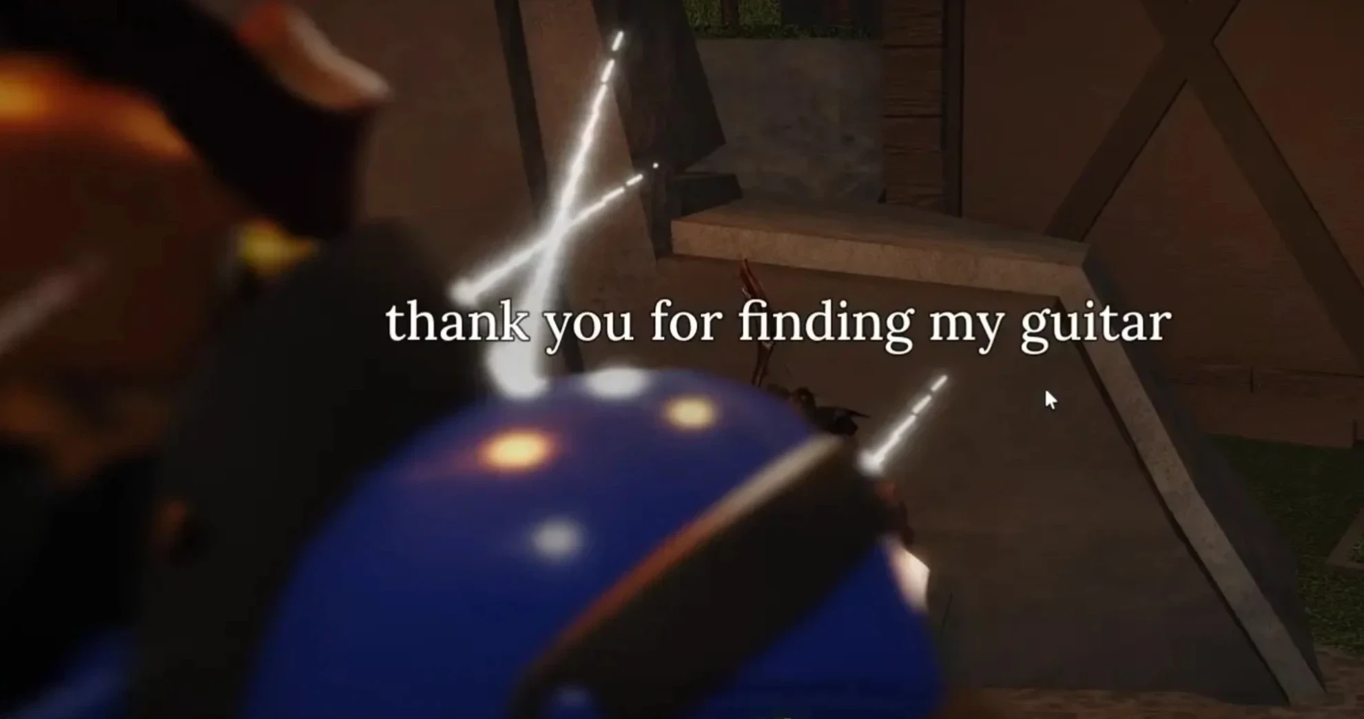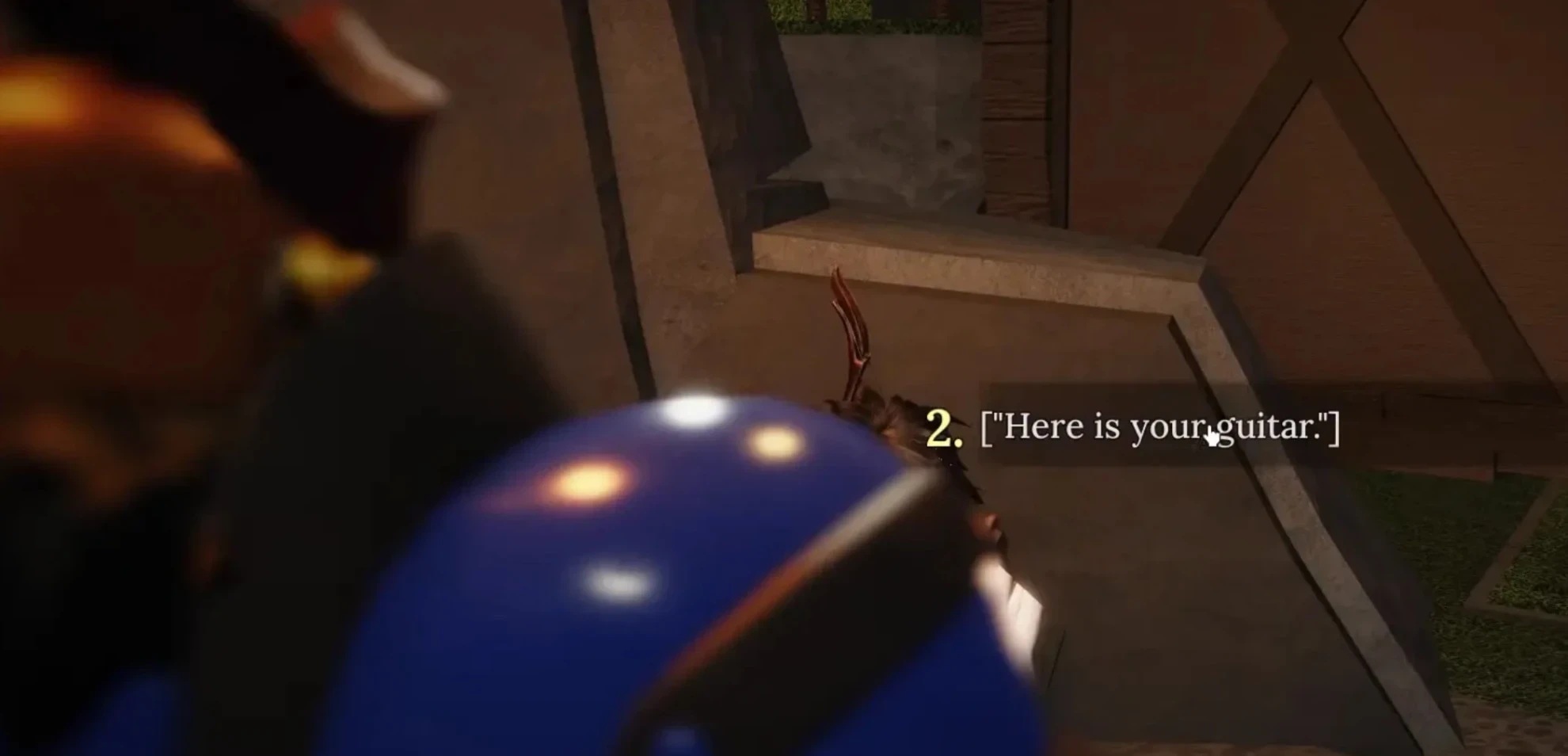 Поговорите с ним и предложите свою помощь. Без этого шага вы не сможете подобрать гитару, даже если обнаружите нужное место.