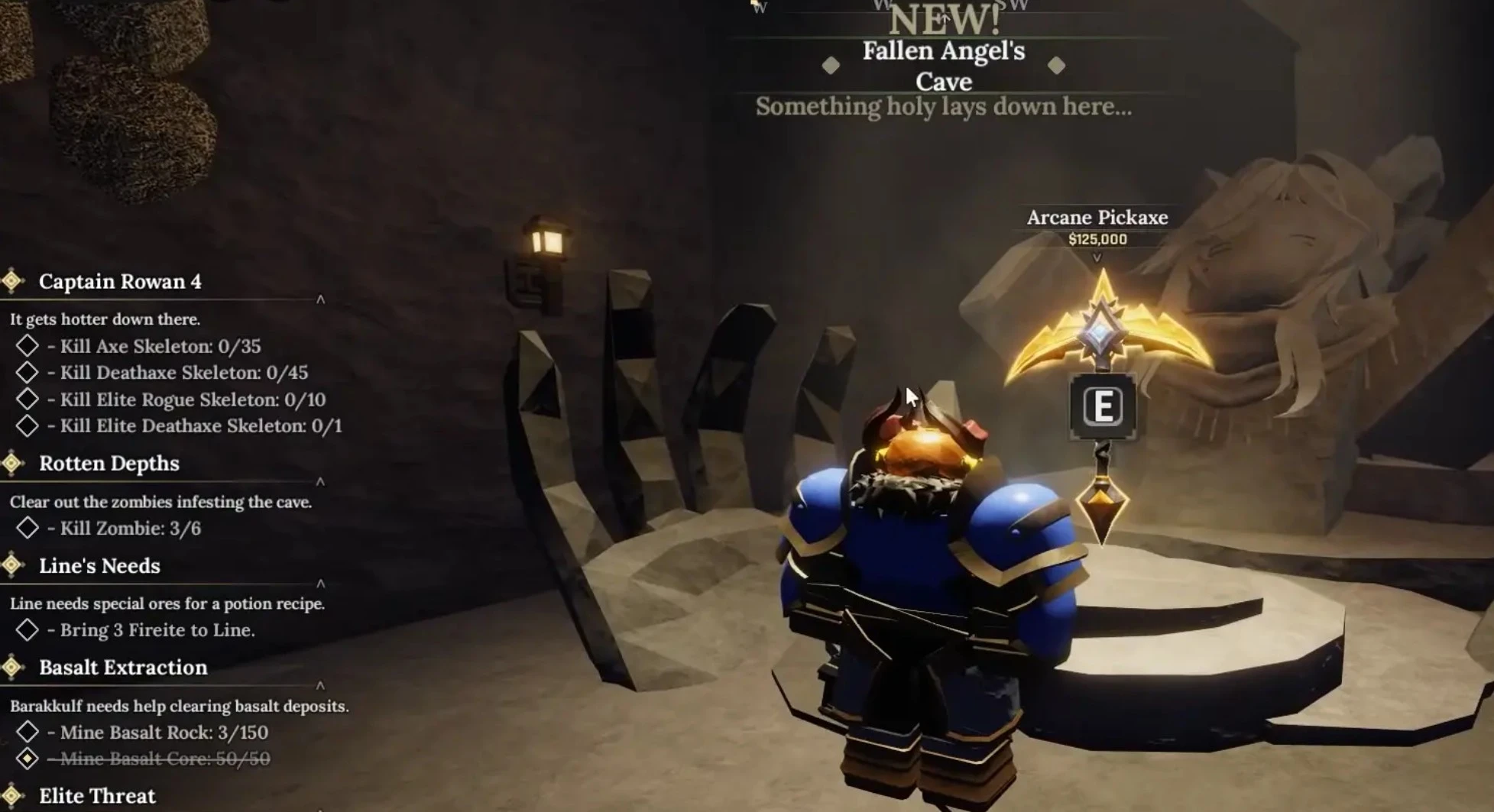 Главное сокровище этого квеста – именно ключ. За решеткой находится проход в Fallen Angel’s Cave (Пещера падшего ангела), где можно приобрести мощную Arcane Pickaxe (Мистическая кирка). Она стоит немалых денег, но ради нее многие стремятся выполнить квест как можно раньше.