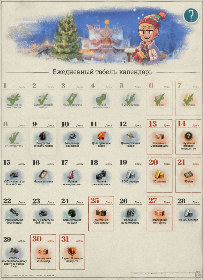 В декабре 2025 года работает Табель-календарь - система ежедневных наград.