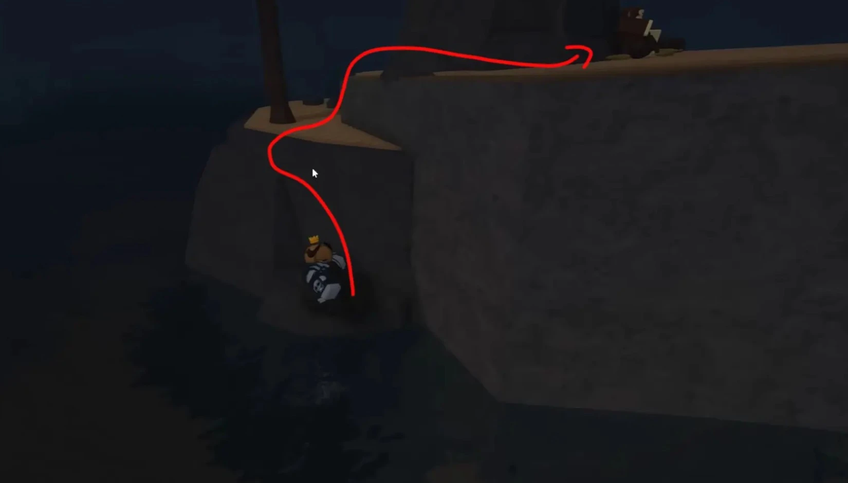 Сразу после телепортации повернитесь и направляйтесь к деревянному причалу впереди. Спрыгните в воду и плывите вправо. Вдали вы увидите два острова: большой и маленький. Вам нужен маленький остров (слева). Обойдите его, чтобы найти небольшой выступ, по которому можно взобраться наверх. Здесь, рядом с камнем, вы обнаружите скучающую обезьяну.