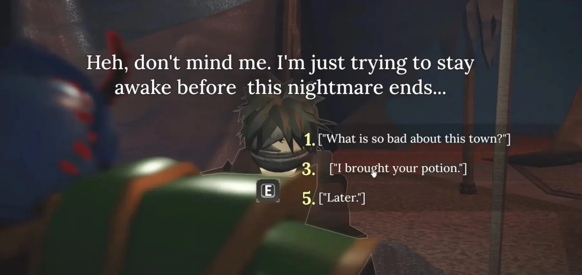 В диалоге с Исааком выберите фразу "Что с тобой случилось?", чтобы узнать о его травме и потребности в лекарстве. Затем выберите "Конечно, что тебе нужно?", чтобы активировать квест.
